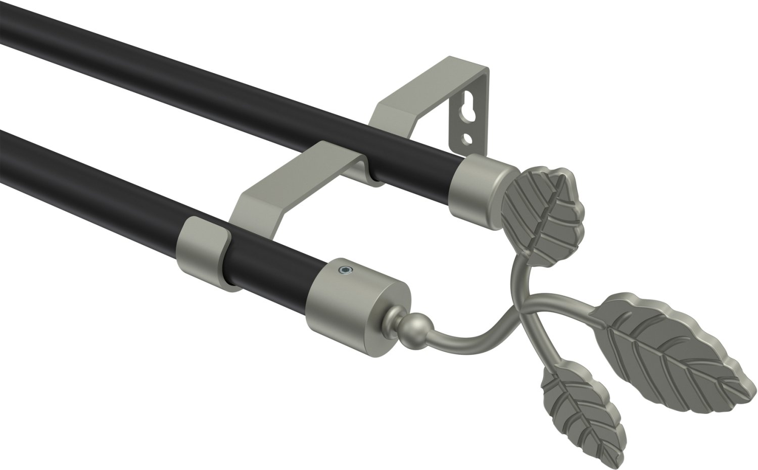 Gardinenstangen aus Metall in 16 mm Ø, 2-läufig, Modell OLYMP - Alessia Schwarz / Chrom matt (ohne Ringe)