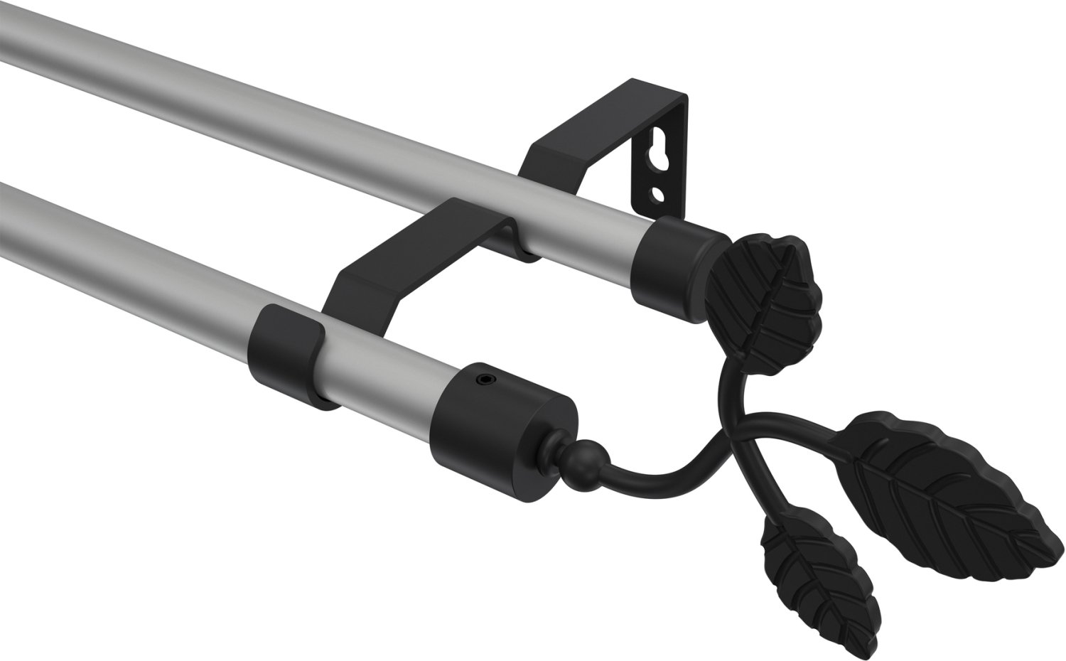 Gardinenstangen aus Metall in 16 mm Ø, 2-läufig, Modell OLYMP - Alessia Silbergrau / Schwarz (ohne Ringe)