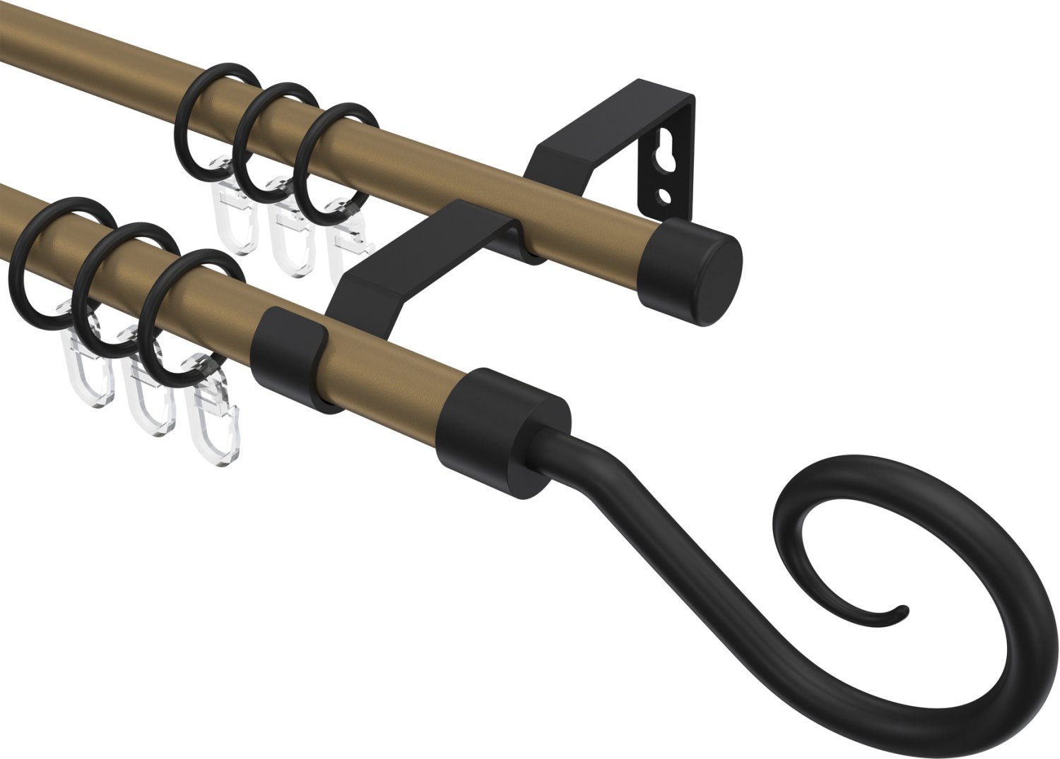 Gardinenstangen aus Metall in 16 mm Ø, 2-läufig, Modell OLYMP - Allegra Gold matt / Schwarz