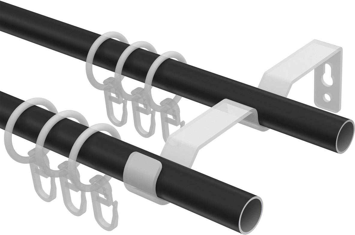Gardinenstangen aus Metall in 16 mm Ø, 2-läufig, Modell OLYMP - Allegra Schwarz