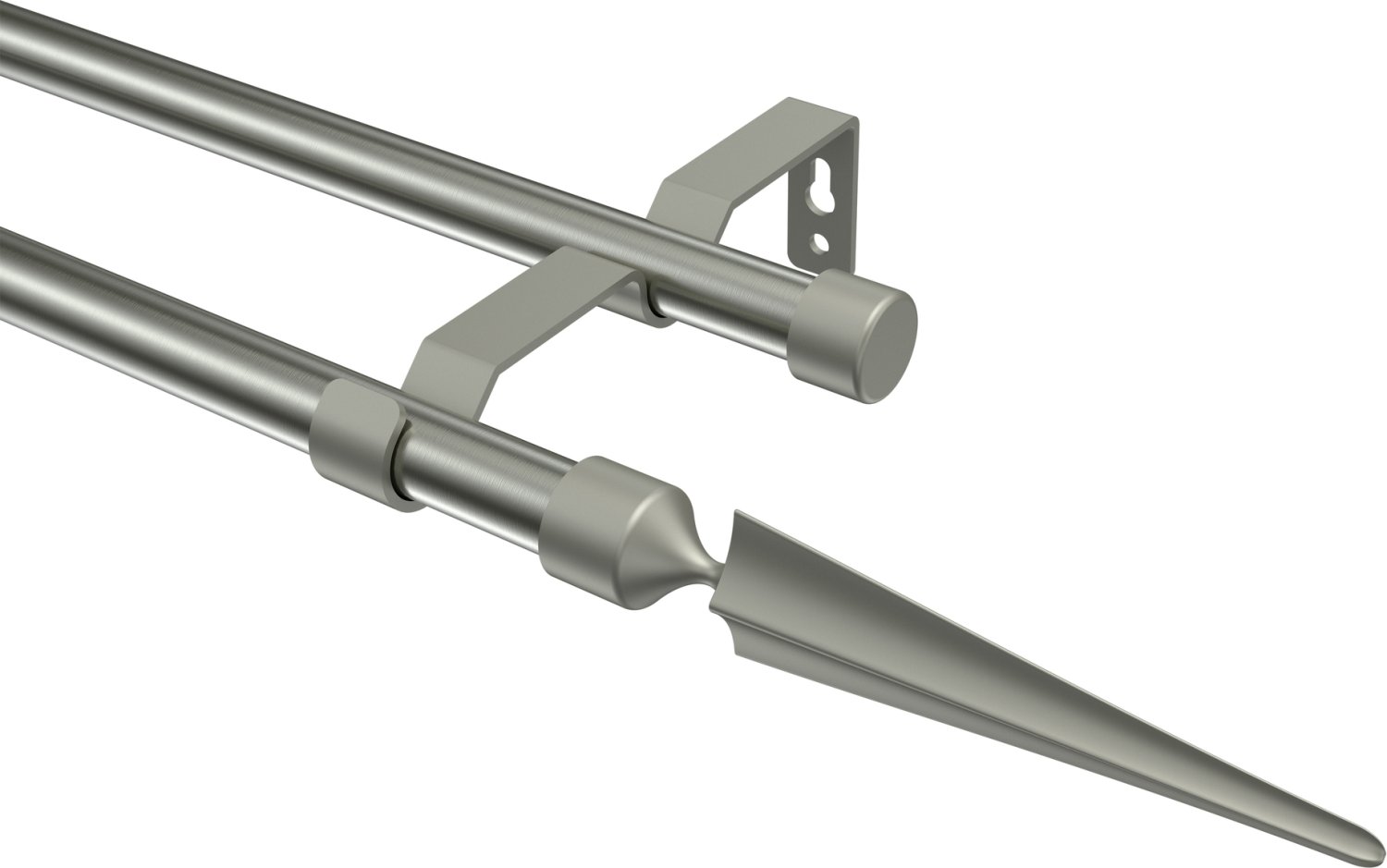 Gardinenstangen aus Metall in 16 mm Ø, 2-läufig, Modell OLYMP - Lorenzo Edelstahl-Optik / Chrom matt (ohne Ringe)