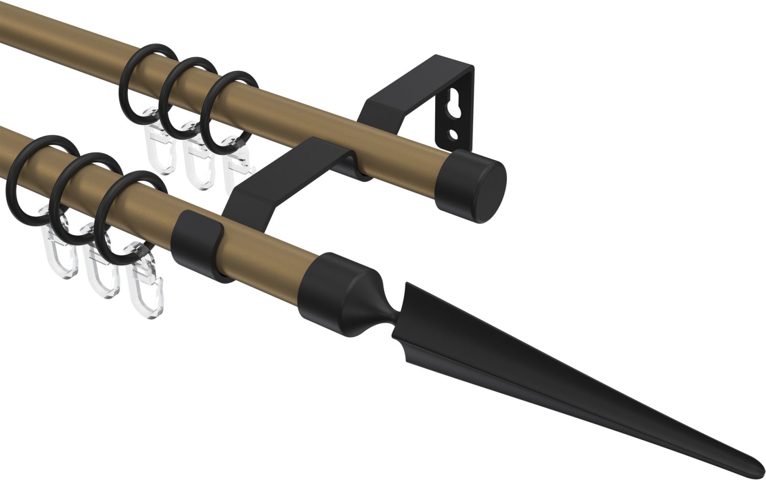 Gardinenstangen aus Metall in 16 mm Ø, 2-läufig, Modell OLYMP - Lorenzo Gold matt / Schwarz