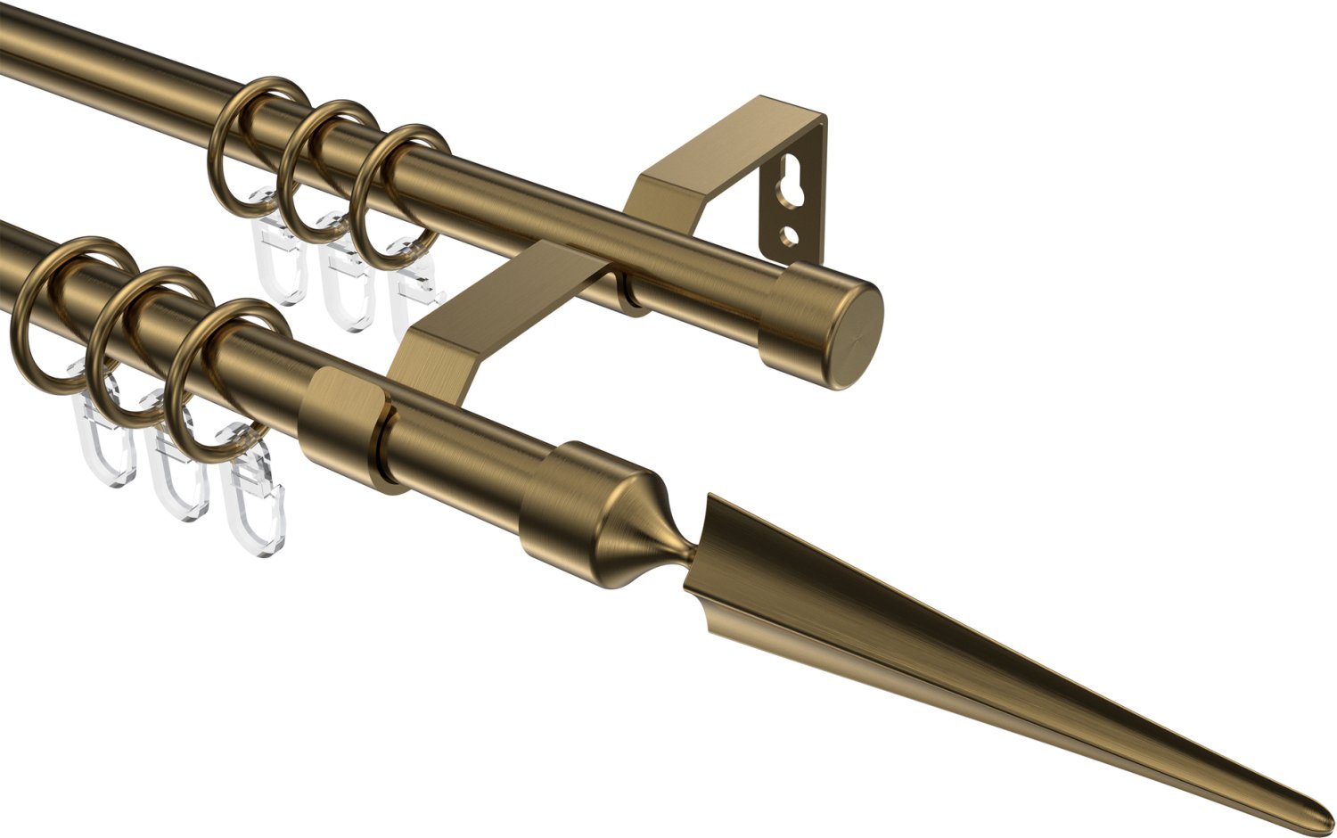 Gardinenstangen aus Metall in 16 mm Ø, 2-läufig, Modell OLYMP - Lorenzo Messing Antik