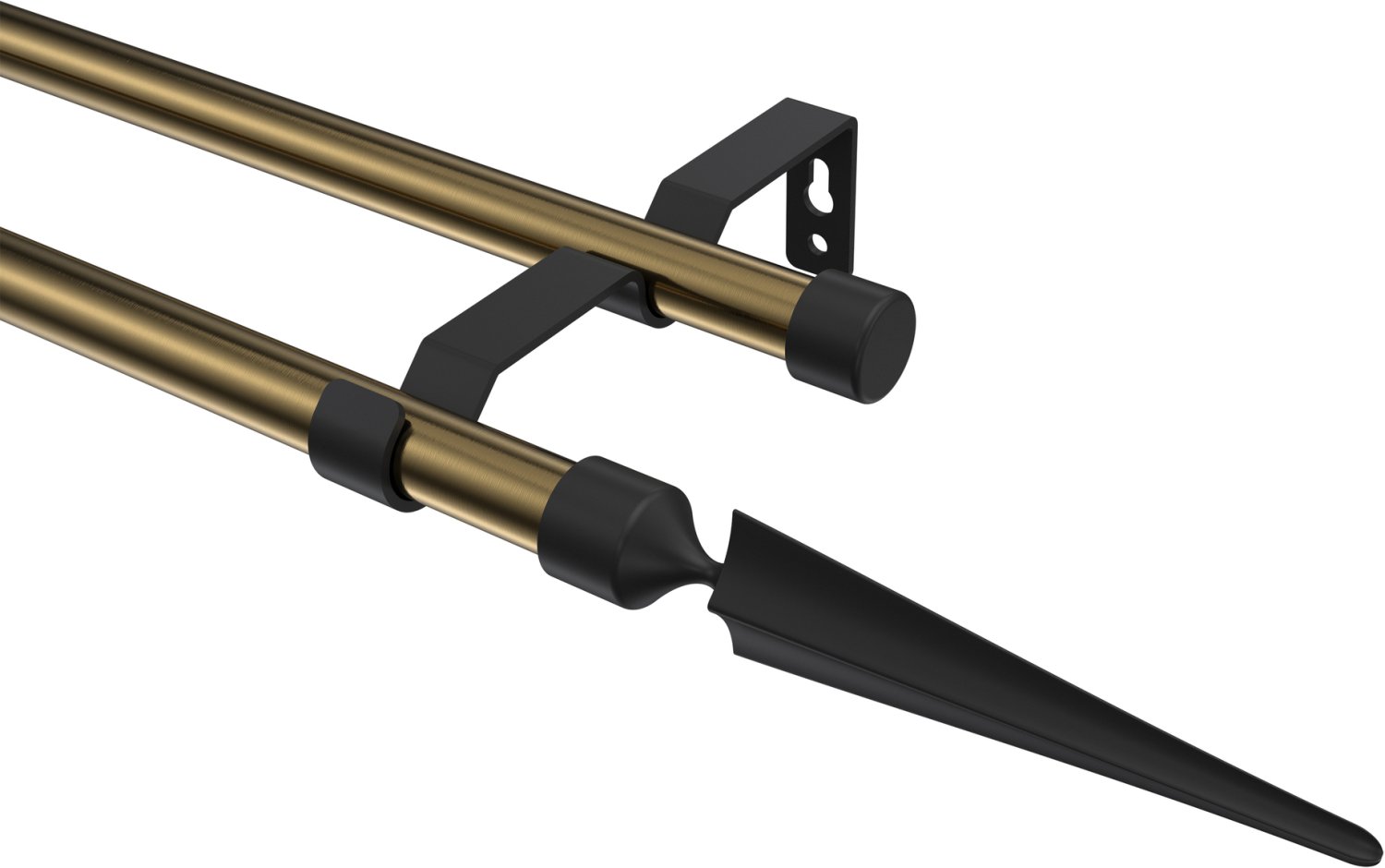 Gardinenstangen aus Metall in 16 mm Ø, 2-läufig, Modell OLYMP - Lorenzo Messing Antik / Schwarz (ohne Ringe)