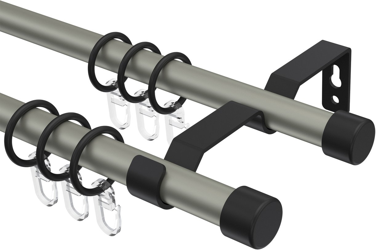 Informationen zu Gardinenstange Metall 16 mm Ø 2-läufig OLYMP - Lucan Chrom matt / Schwarz: