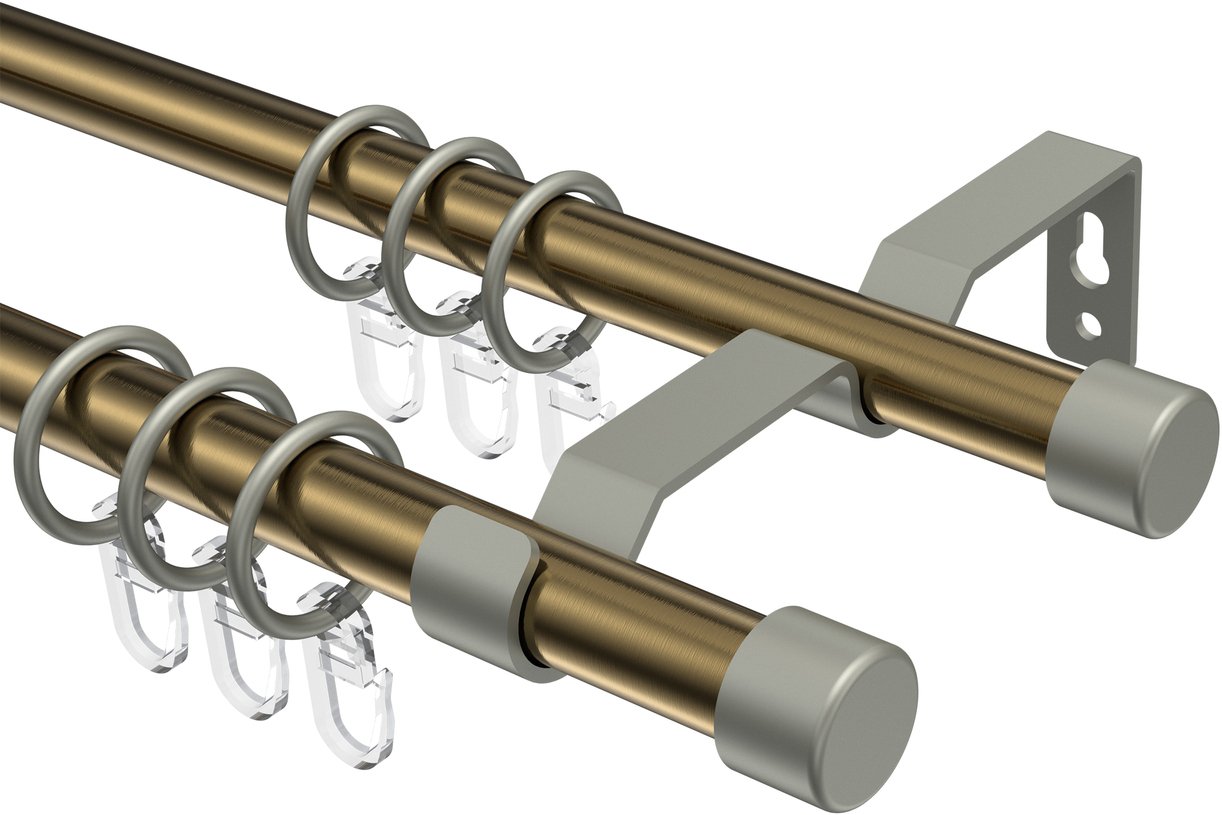 Gardinenstangen aus Metall in 16 mm Ø, 2-läufig, Modell OLYMP - Lucan Messing Antik / Chrom matt