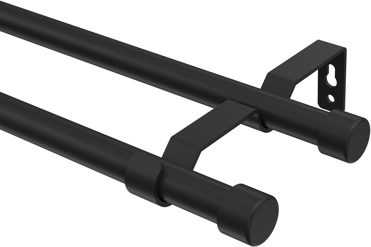 Gardinenstangen aus Metall in 16 mm Ø, 2-läufig, Modell OLYMP - Lucan Schwarz (ohne Ringe)