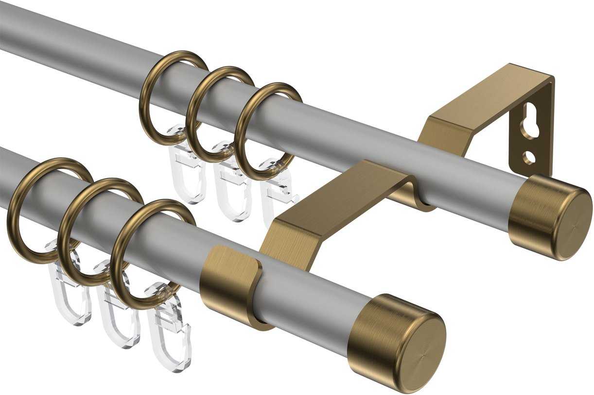 Gardinenstangen aus Metall in 16 mm Ø, 2-läufig, Modell OLYMP - Lucan Silbergrau / Messing Antik