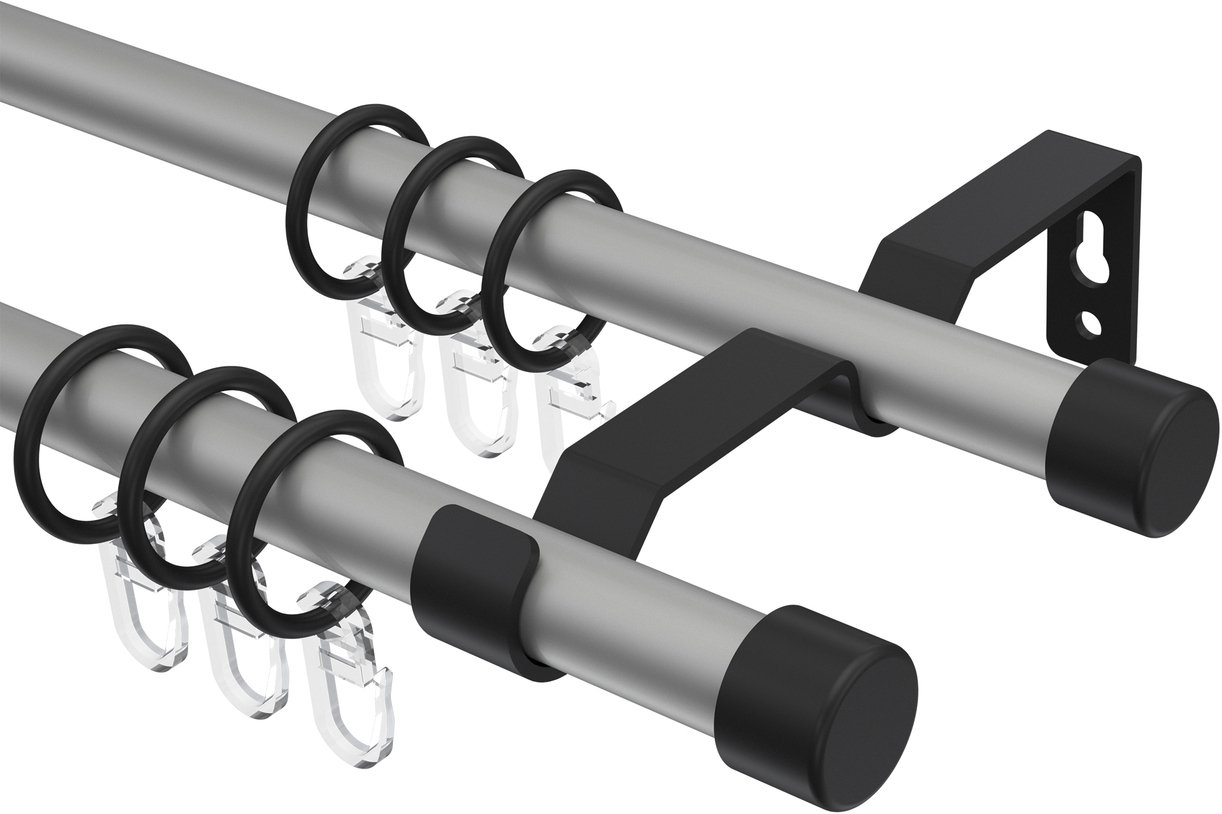 Informationen zu Gardinenstange Metall 16 mm Ø 2-läufig OLYMP - Lucan Silbergrau / Schwarz: