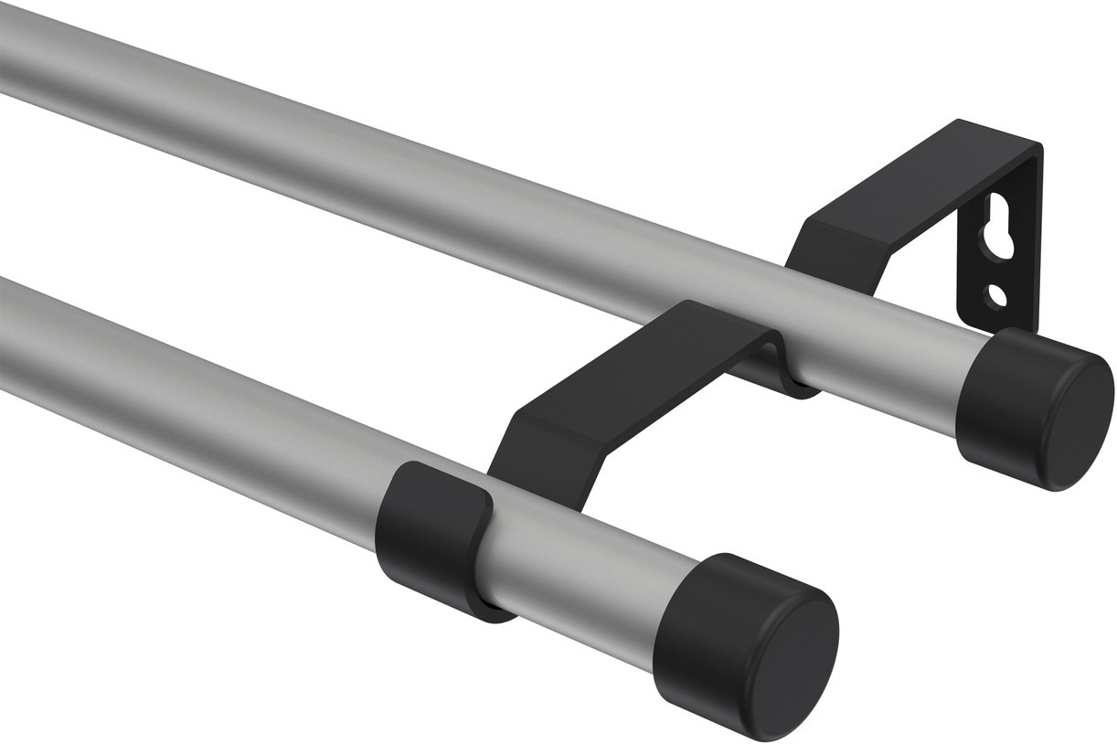 Informationen zu Gardinenstange Metall 16 mm Ø 2-läufig OLYMP - Lucan Silbergrau / Schwarz (ohne Ringe):