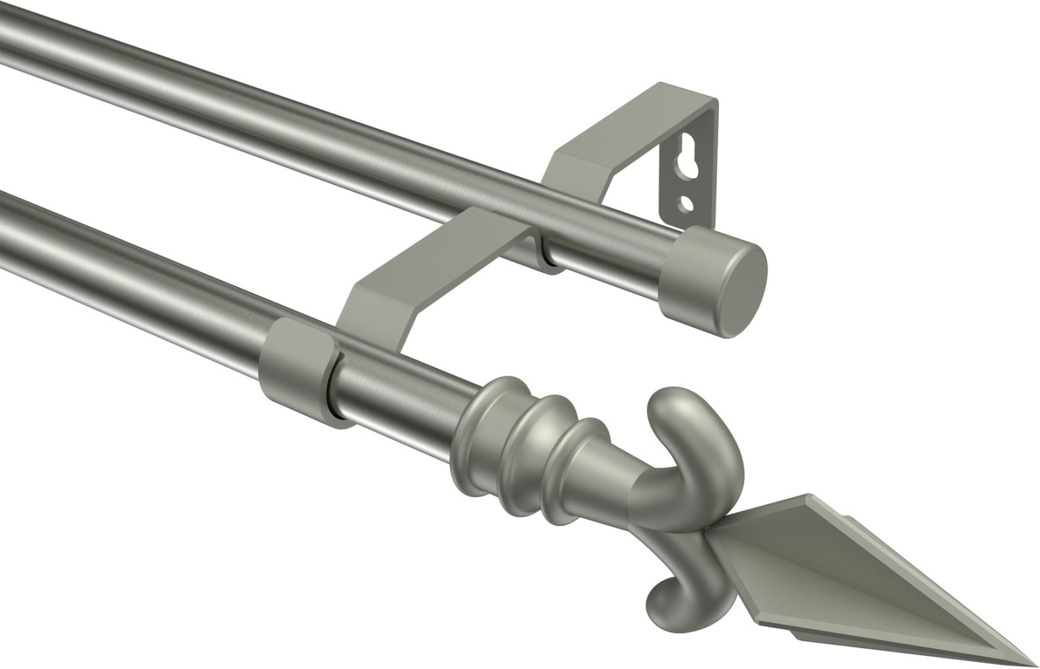 Gardinenstangen aus Metall in 16 mm Ø, 2-läufig, Modell OLYMP - Matteo Edelstahl-Optik / Chrom matt (ohne Ringe)