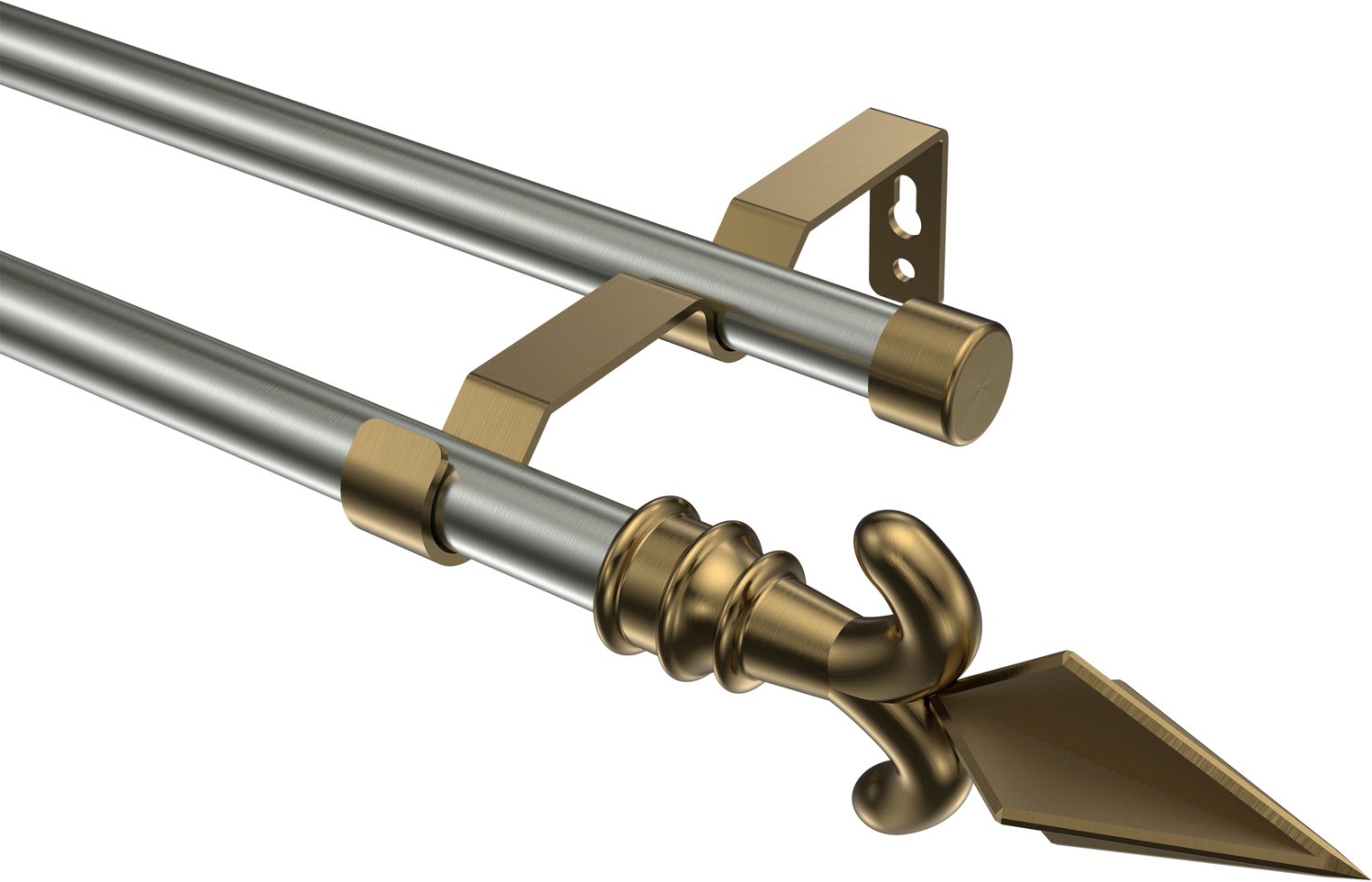 Informationen zu Gardinenstange Metall 16 mm Ø 2-läufig OLYMP - Matteo Edelstahl-Optik / Messing Antik (ohne Ringe):