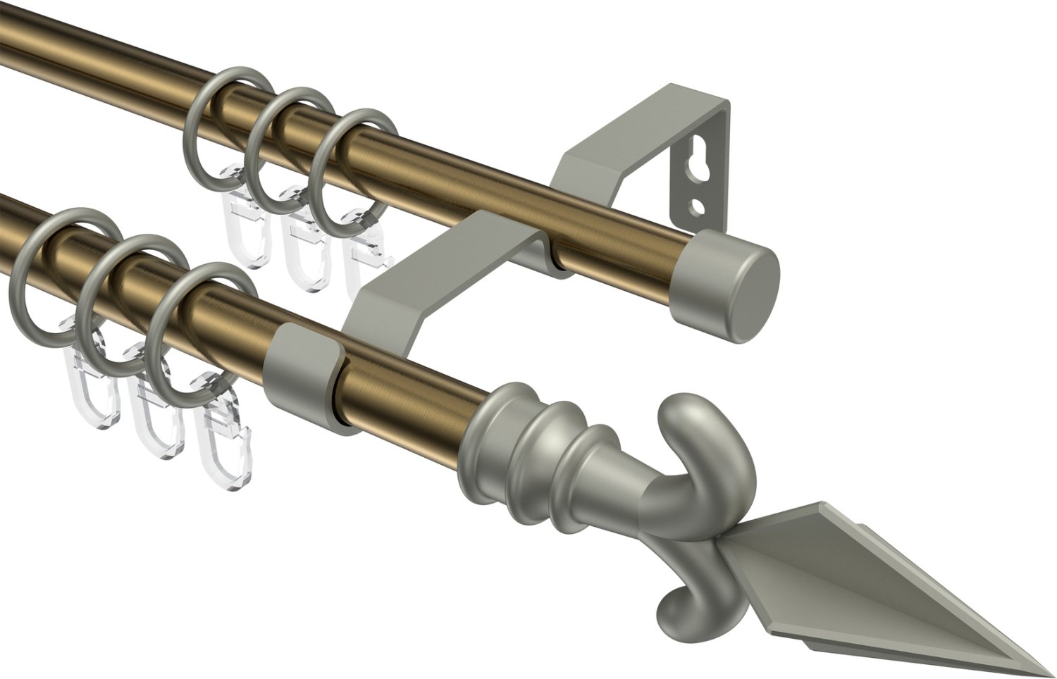 Informationen zu Gardinenstange Metall 16 mm Ø 2-läufig OLYMP - Matteo Messing Antik / Chrom matt:
