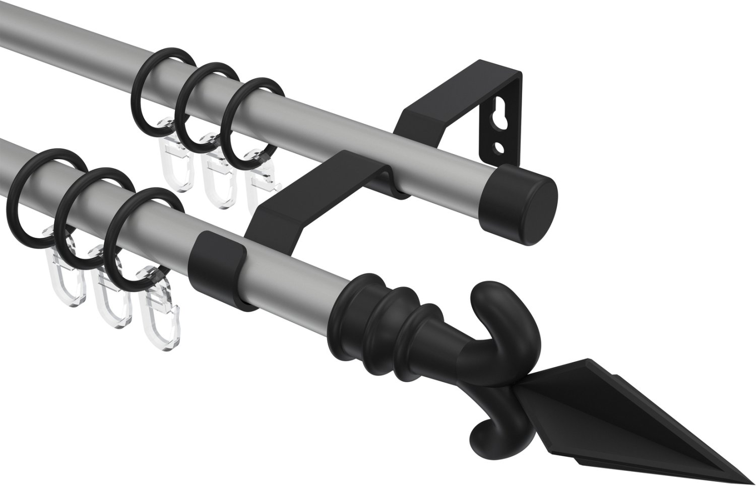 Informationen zu Gardinenstange Metall 16 mm Ø 2-läufig OLYMP - Matteo Silbergrau / Schwarz: