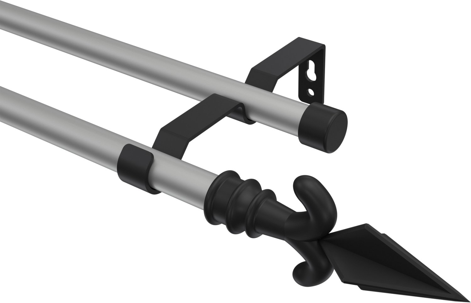 Gardinenstangen aus Metall in 16 mm Ø, 2-läufig, Modell OLYMP - Matteo Silbergrau / Schwarz (ohne Ringe)