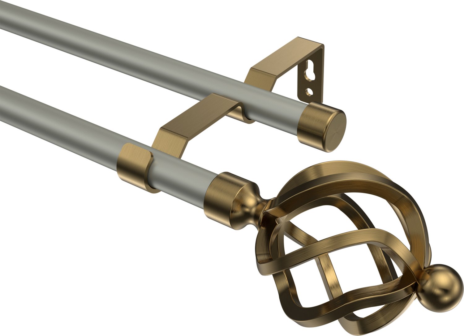 Informationen zu Gardinenstange Metall 16 mm Ø 2-läufig OLYMP - Paolo Chrom matt / Messing Antik (ohne Ringe):