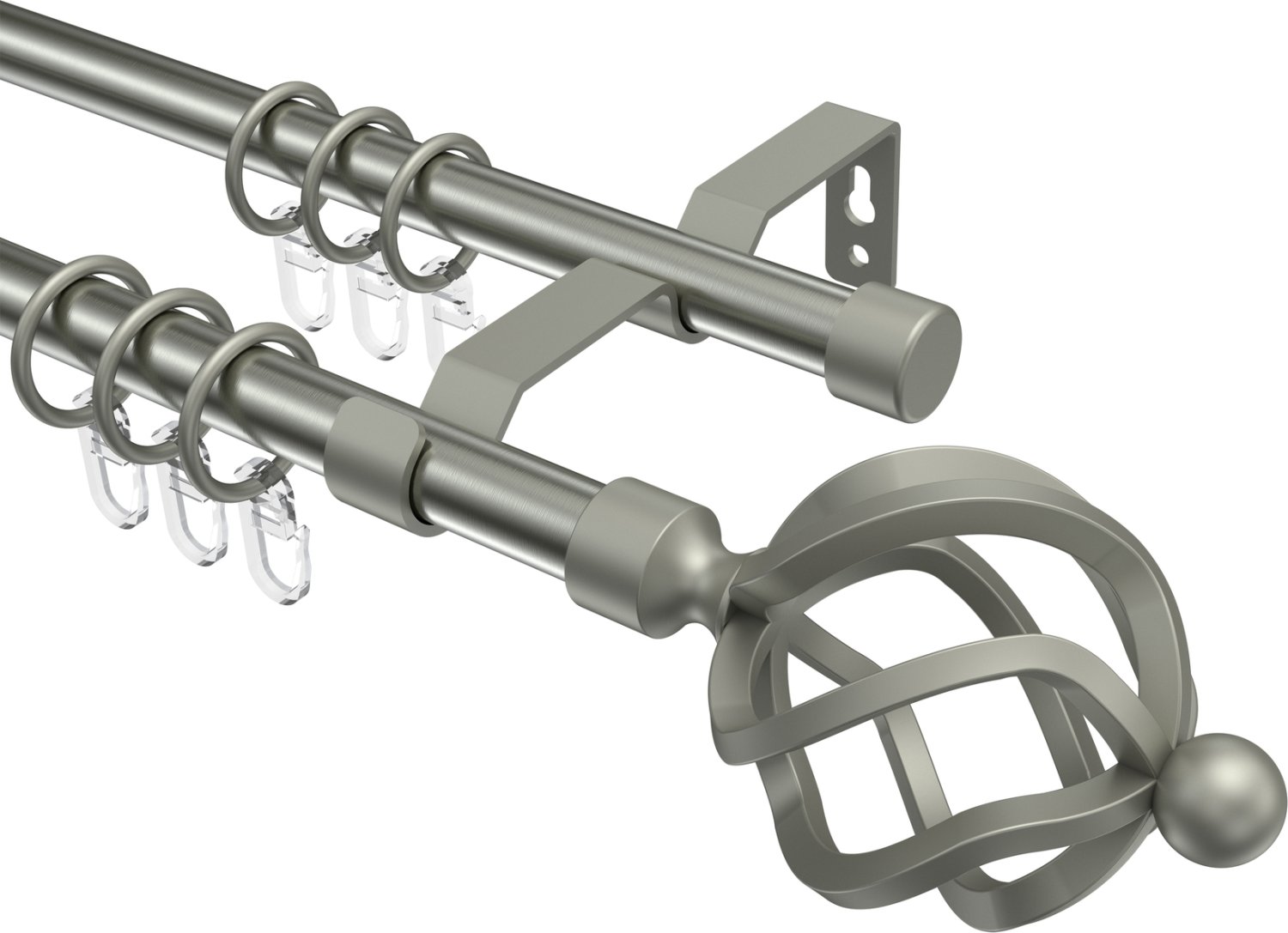 Gardinenstangen aus Metall in 16 mm Ø, 2-läufig, Modell OLYMP - Paolo Edelstahl-Optik / Chrom matt