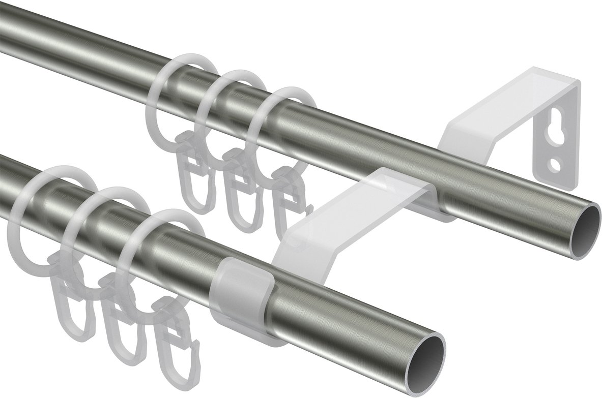 Informationen zu Gardinenstange Metall 16 mm Ø 2-läufig OLYMP - Paolo Edelstahl-Optik / Chrom matt: