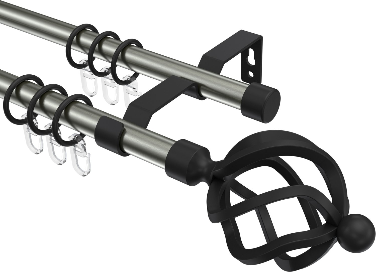 Gardinenstangen aus Metall in 16 mm Ø, 2-läufig, Modell OLYMP - Paolo Edelstahl-Optik / Schwarz