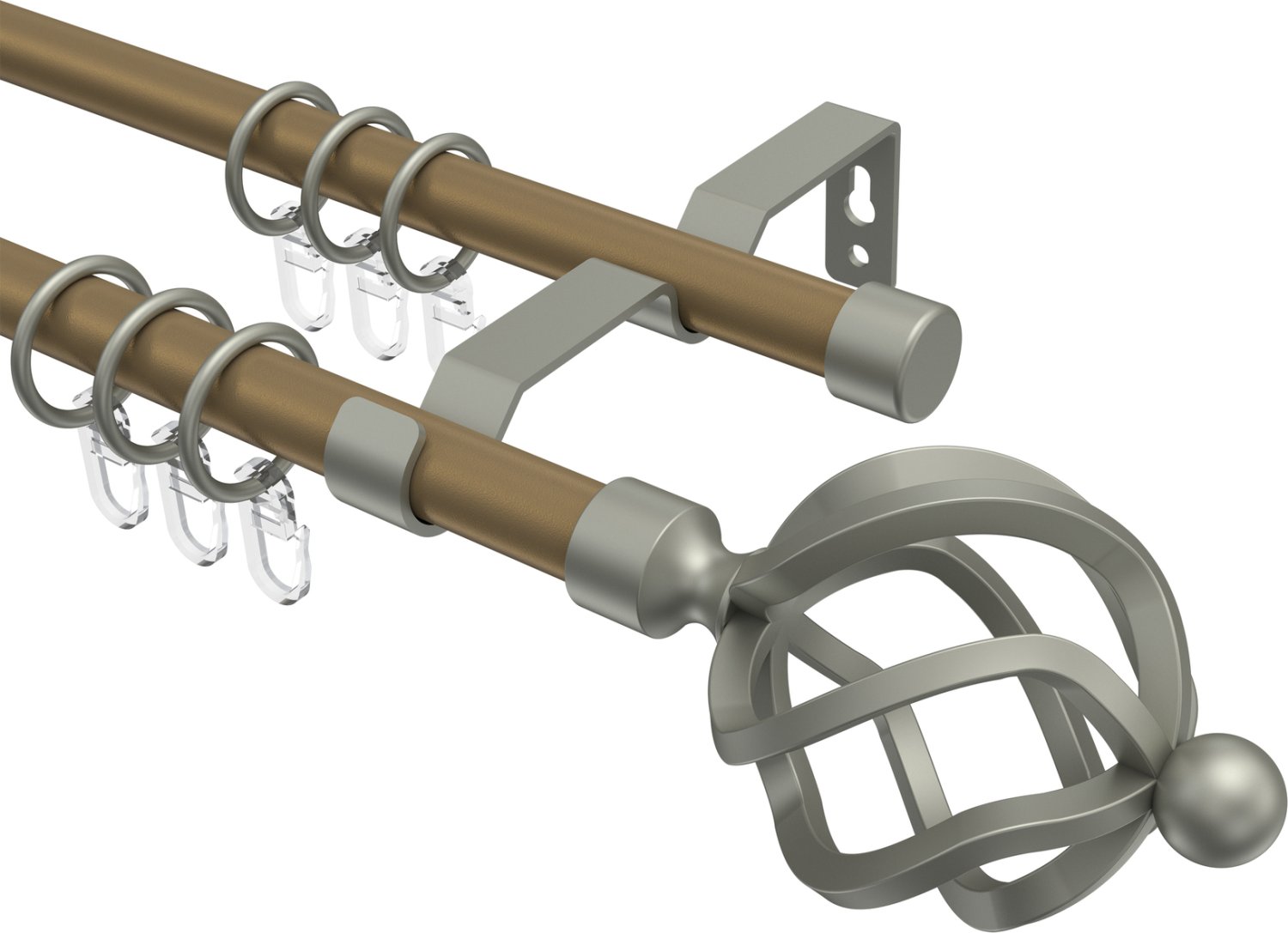 Gardinenstangen aus Metall in 16 mm Ø, 2-läufig, Modell OLYMP - Paolo Gold matt / Chrom matt