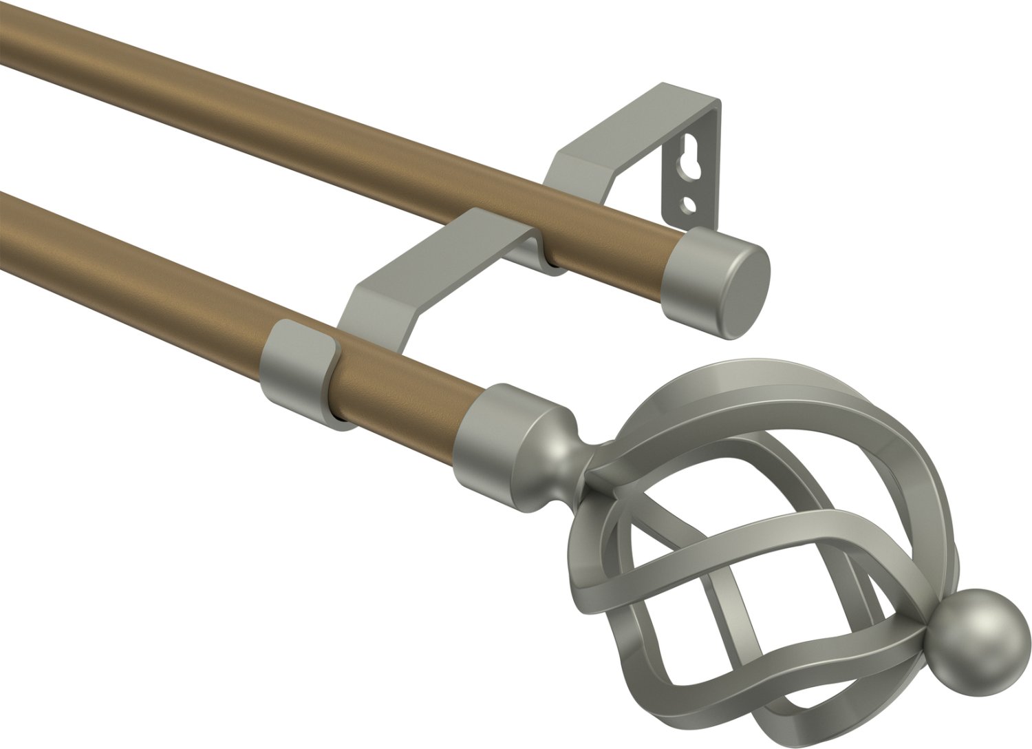 Gardinenstangen aus Metall in 16 mm Ø, 2-läufig, Modell OLYMP - Paolo Gold matt / Chrom matt (ohne Ringe)