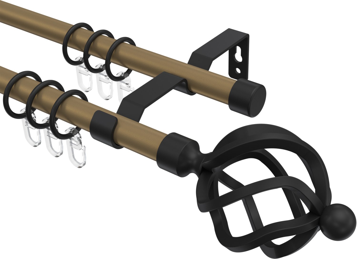 Gardinenstangen aus Metall in 16 mm Ø, 2-läufig, Modell OLYMP - Paolo Gold matt / Schwarz