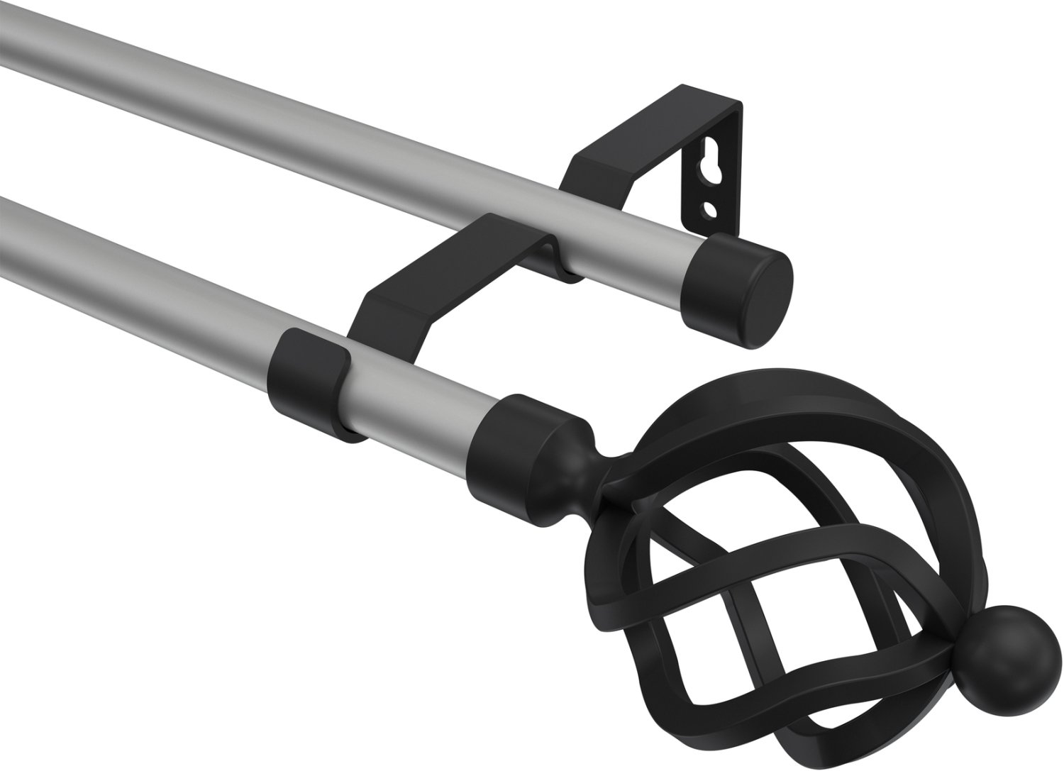 Informationen zu Gardinenstange Metall 16 mm Ø 2-läufig OLYMP - Paolo Silbergrau / Schwarz (ohne Ringe):