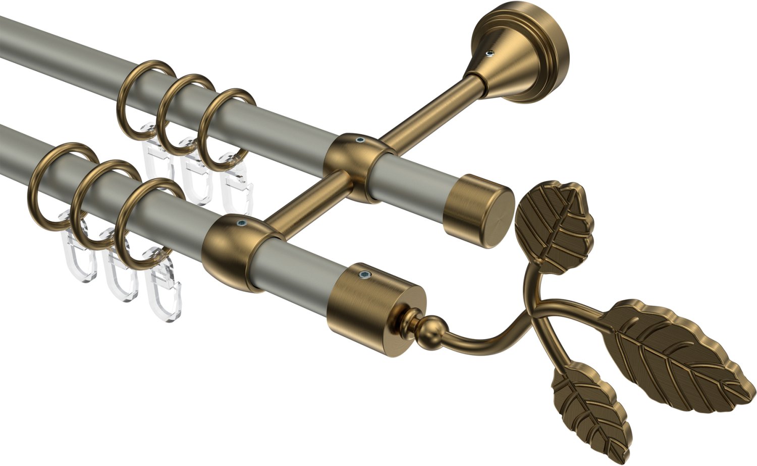 Gardinenstangen aus Metall in 16 mm Ø, 2-läufig, Modell PRIMUS - Alessia Chrom matt / Messing Antik