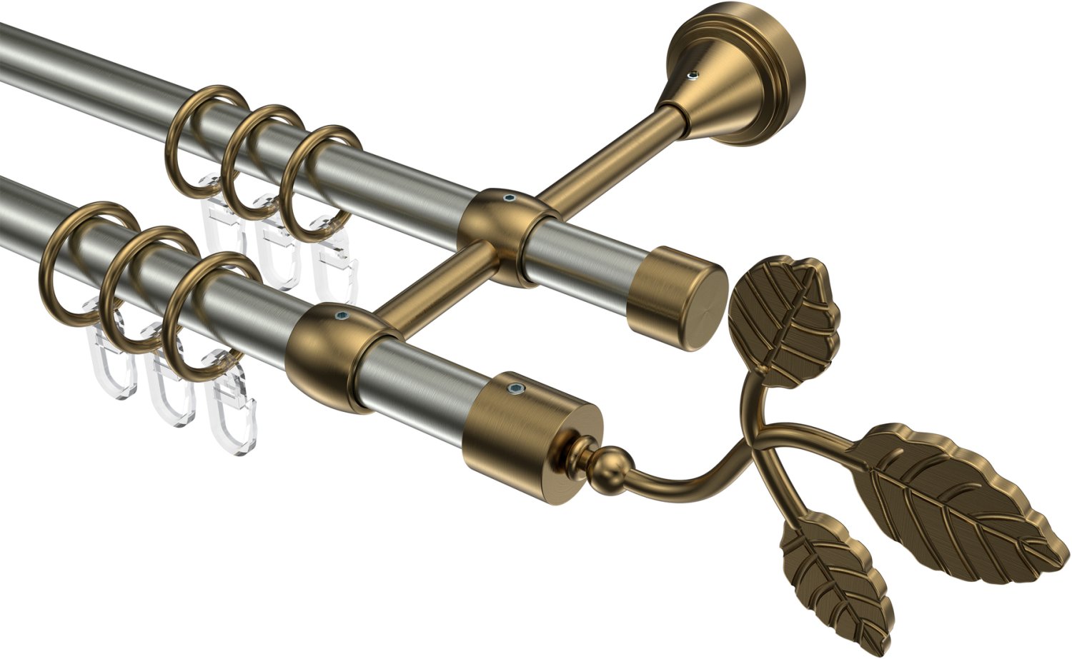 Gardinenstangen aus Metall in 16 mm Ø, 2-läufig, Modell PRIMUS - Alessia Edelstahl-Optik / Messing Antik