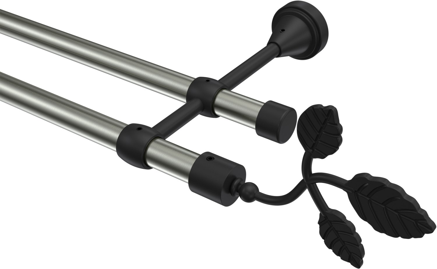 Informationen zu Gardinenstange Metall 16 mm Ø 2-läufig PRIMUS - Alessia Edelstahl-Optik / Schwarz (ohne Ringe):