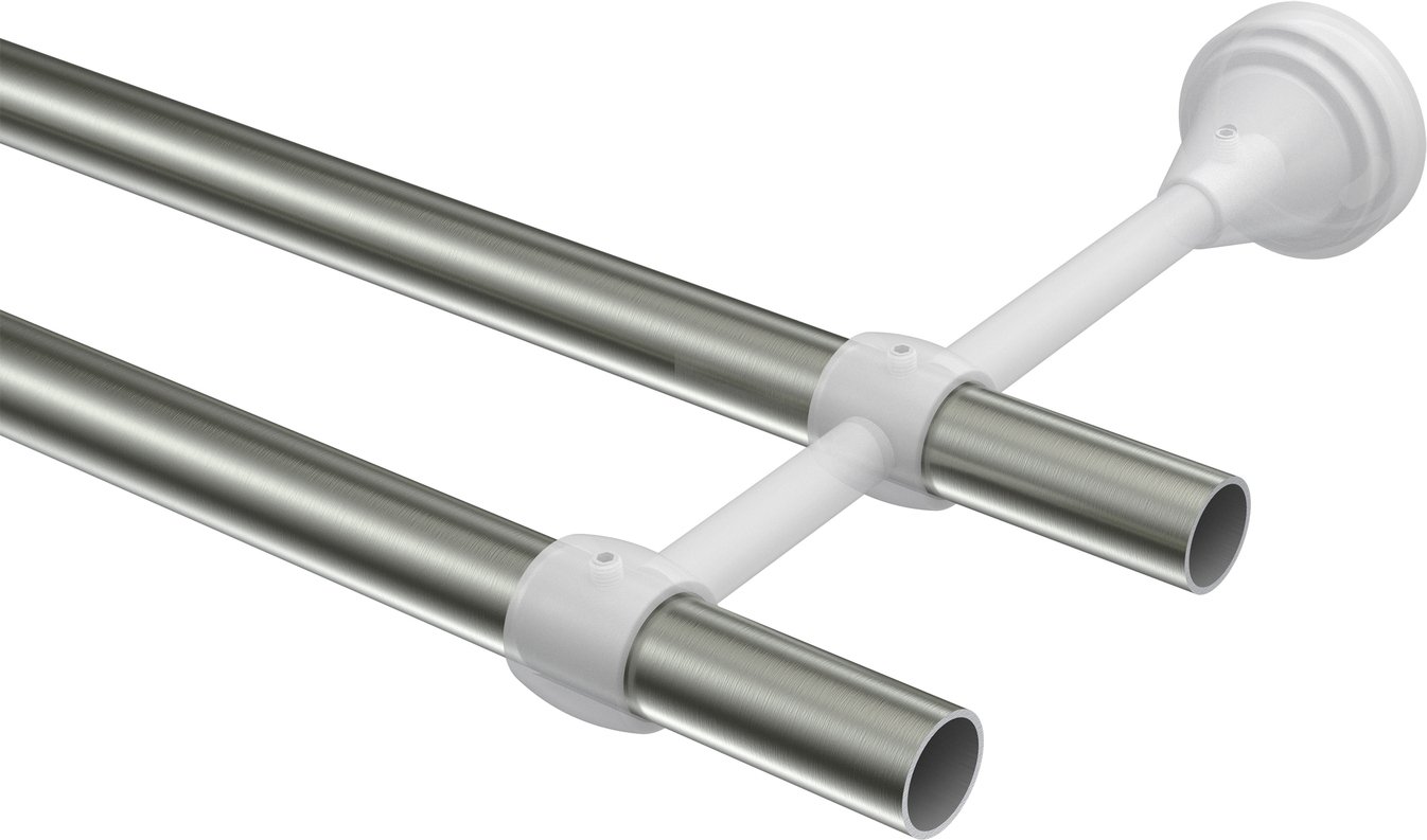 Gardinenstangen aus Metall in 16 mm Ø, 2-läufig, Modell PRIMUS - Alessia Edelstahl-Optik / Schwarz (ohne Ringe)