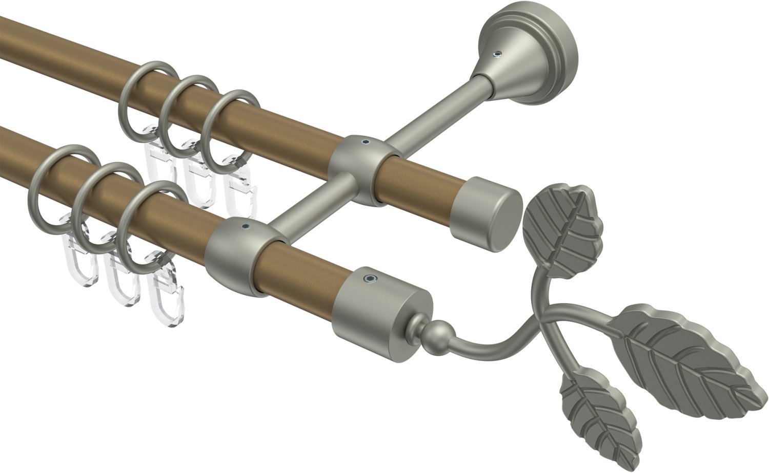 Gardinenstangen aus Metall in 16 mm Ø, 2-läufig, Modell PRIMUS - Alessia Gold matt / Chrom matt
