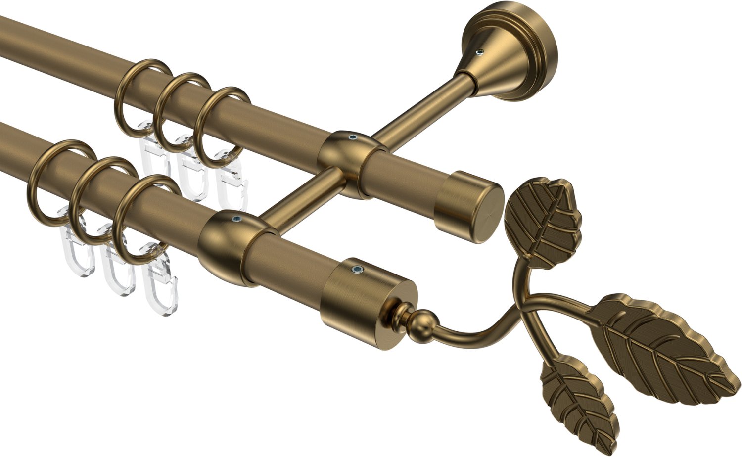 Gardinenstangen aus Metall in 16 mm Ø, 2-läufig, Modell PRIMUS - Alessia Gold matt / Messing Antik