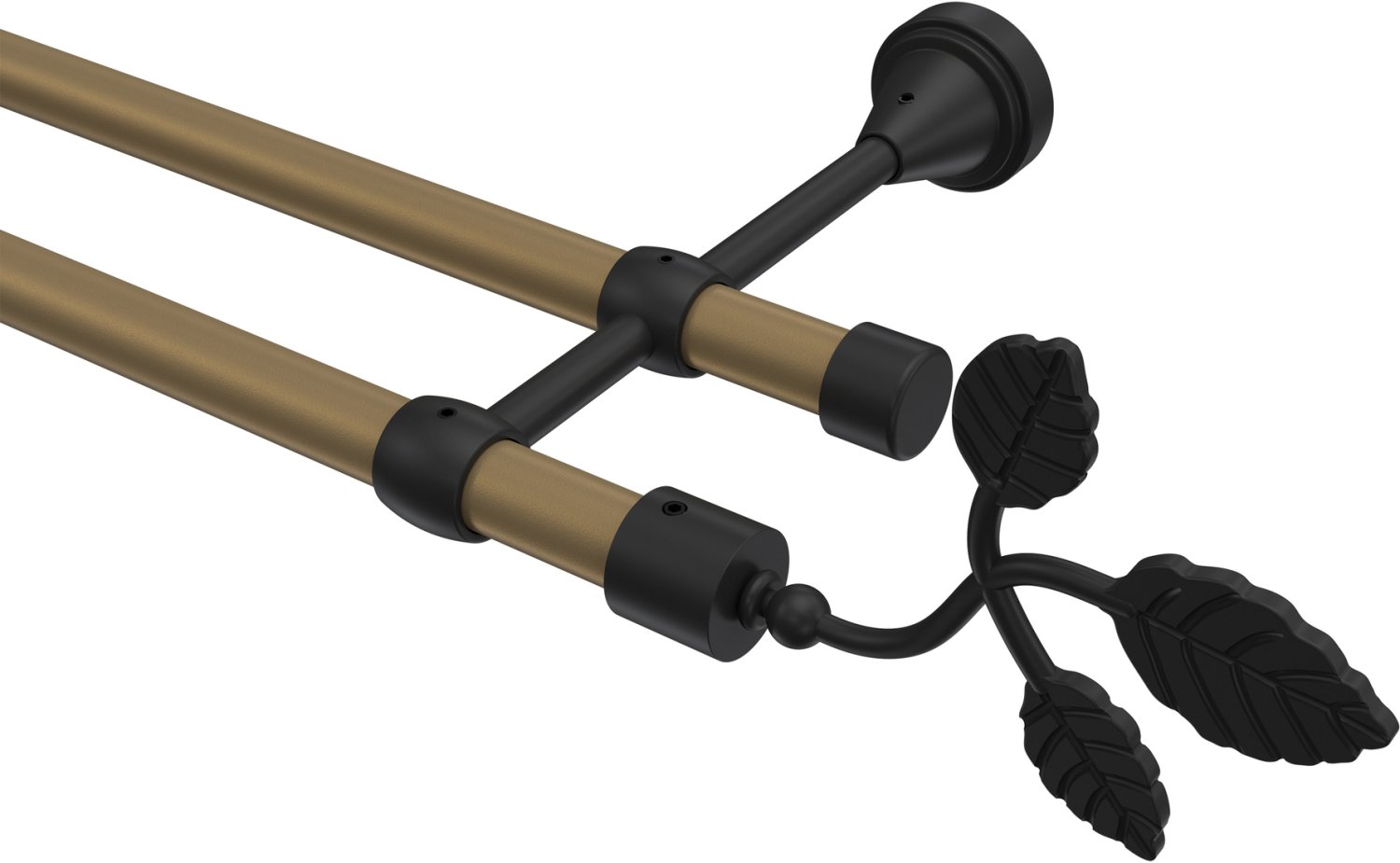 Gardinenstangen aus Metall in 16 mm Ø, 2-läufig, Modell PRIMUS - Alessia Gold matt / Schwarz (ohne Ringe)