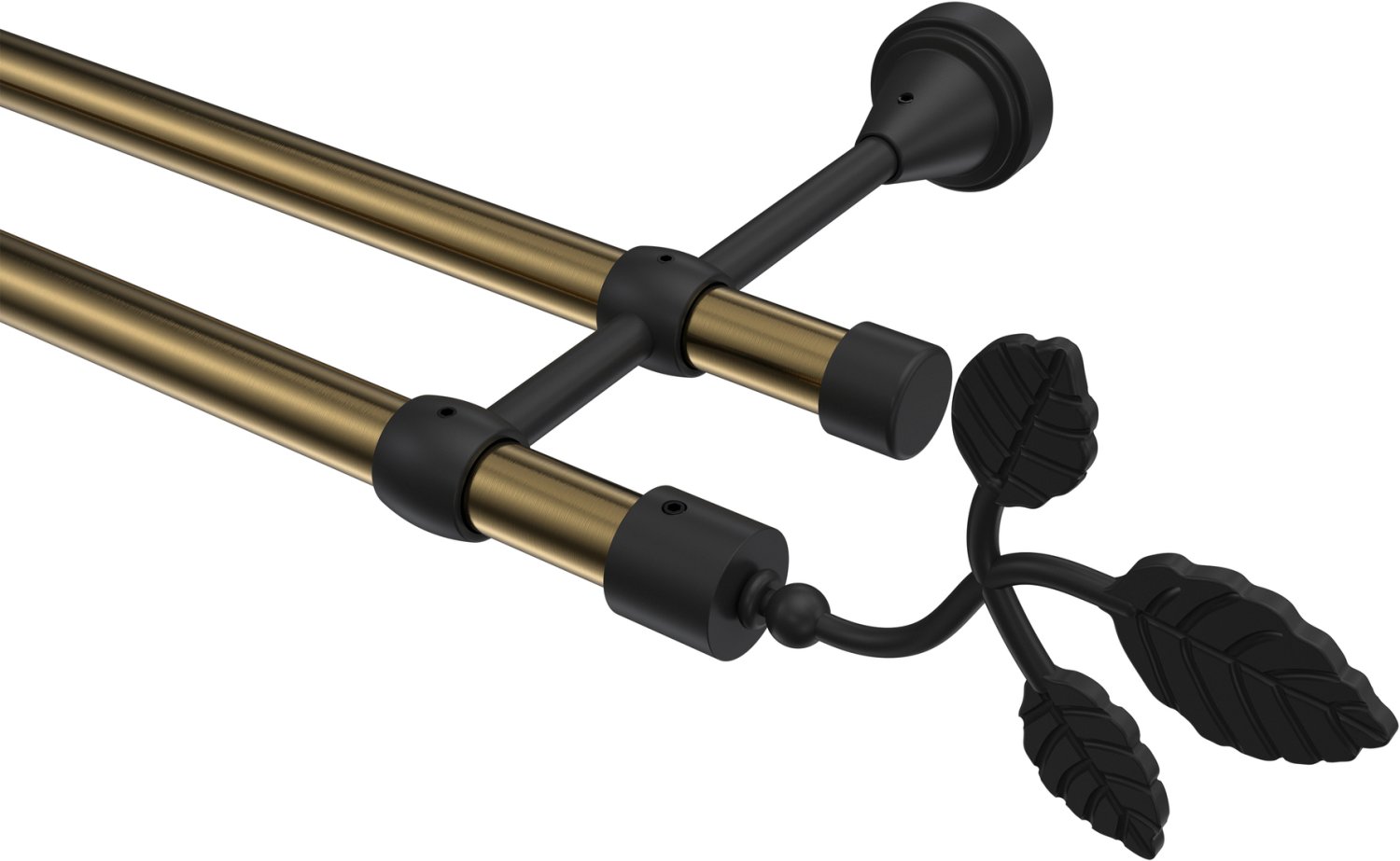 Gardinenstangen aus Metall in 16 mm Ø, 2-läufig, Modell PRIMUS - Alessia Messing Antik / Schwarz (ohne Ringe)