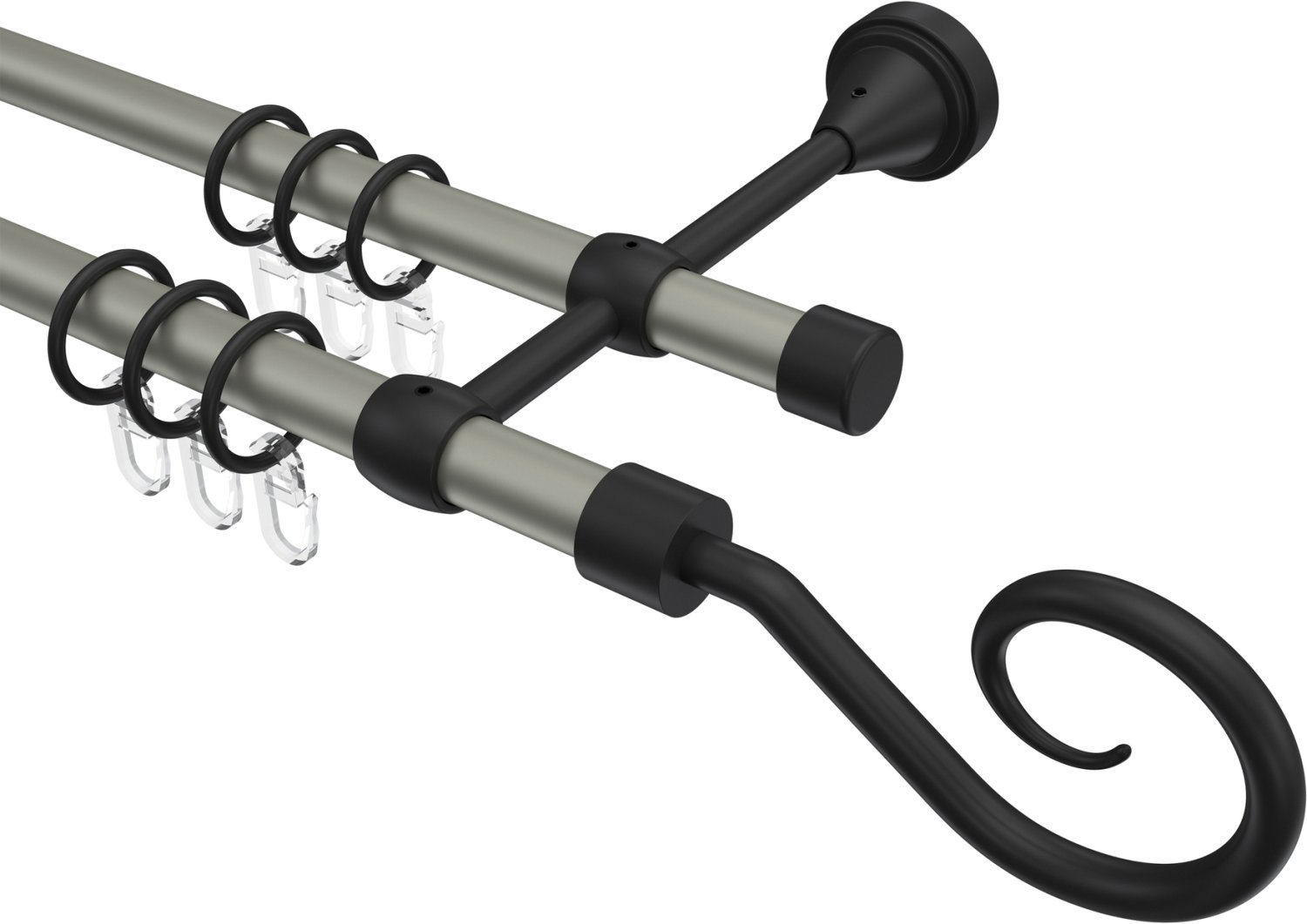 Informationen zu Gardinenstange Metall 16 mm Ø 2-läufig PRIMUS - Allegra Chrom matt / Schwarz: