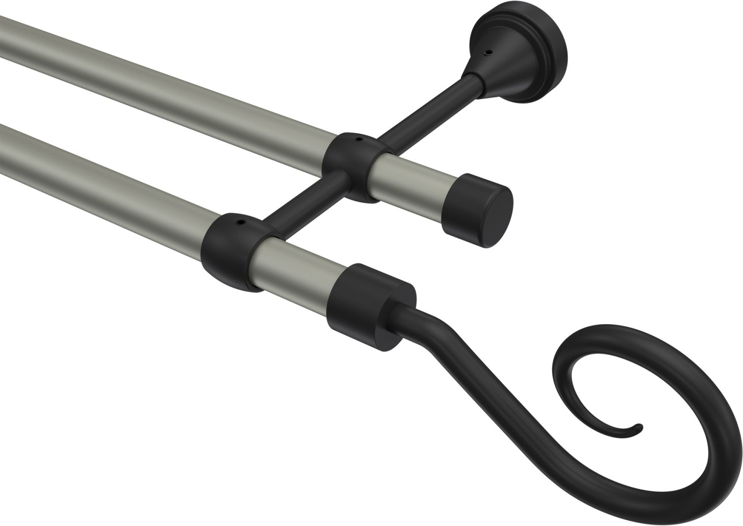 Gardinenstangen aus Metall in 16 mm Ø, 2-läufig, Modell PRIMUS - Allegra Chrom matt / Schwarz (ohne Ringe)