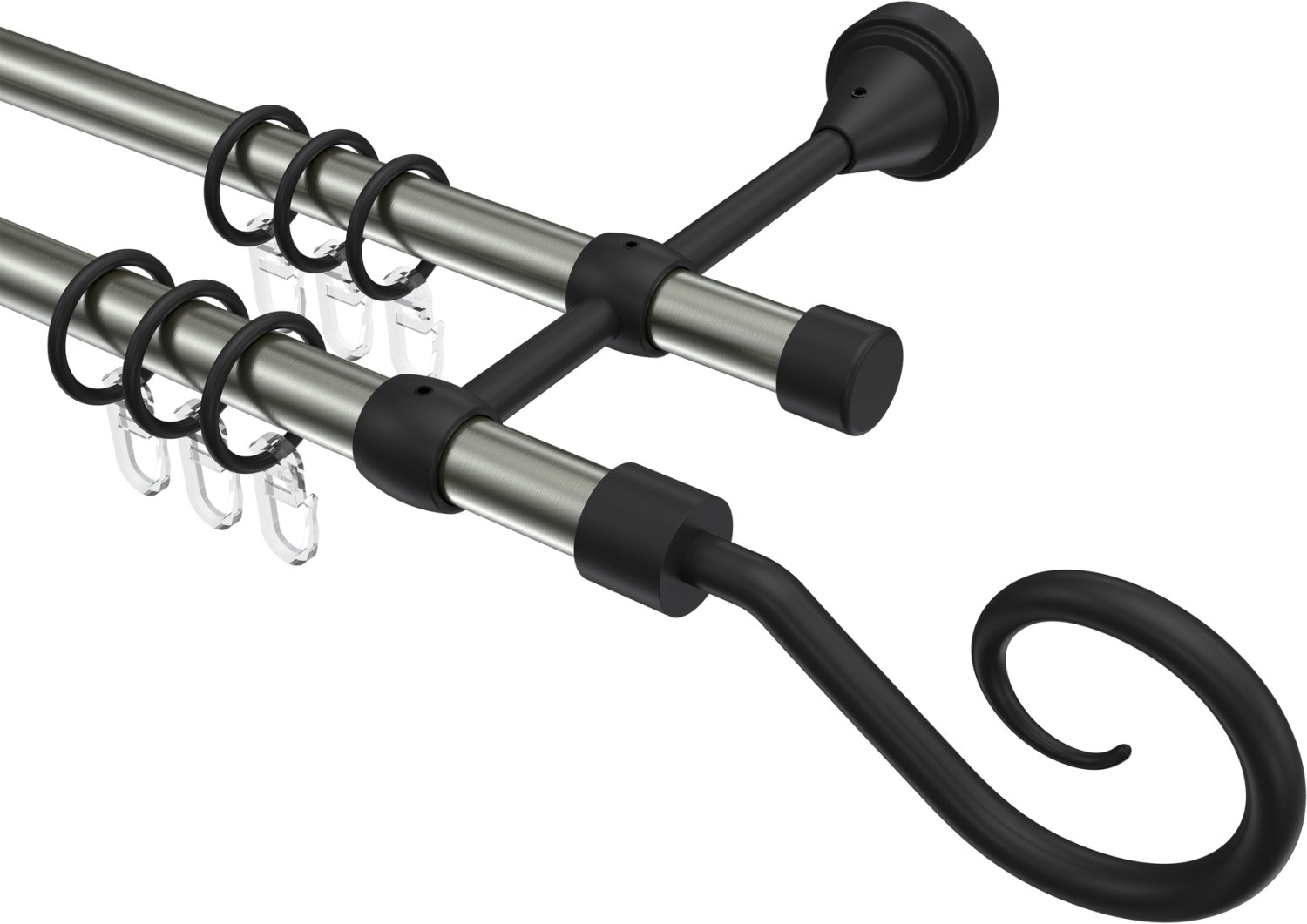 Informationen zu Gardinenstange Metall 16 mm Ø 2-läufig PRIMUS - Allegra Edelstahl-Optik / Schwarz: