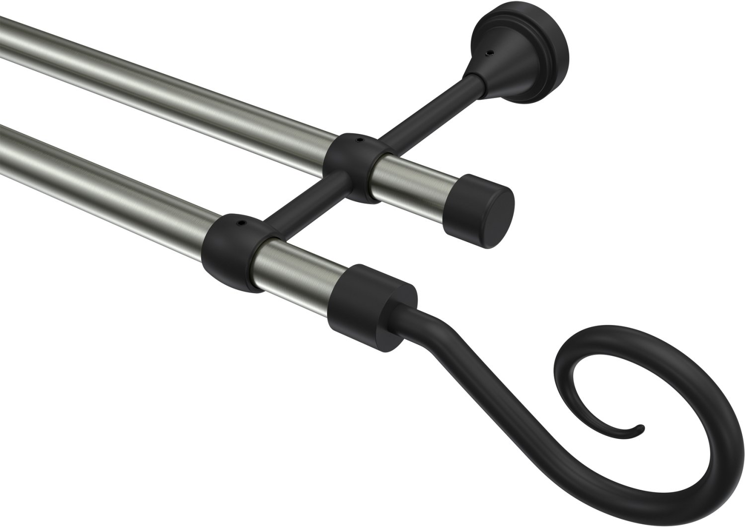 Informationen zu Gardinenstange Metall 16 mm Ø 2-läufig PRIMUS - Allegra Edelstahl-Optik / Schwarz (ohne Ringe):