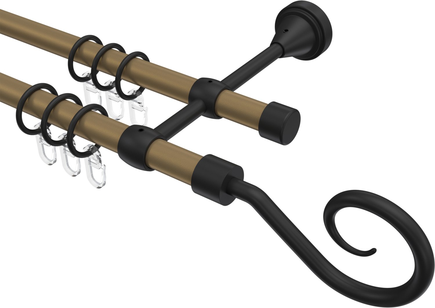 Informationen zu Gardinenstange Metall 16 mm Ø 2-läufig PRIMUS - Allegra Gold matt / Schwarz: