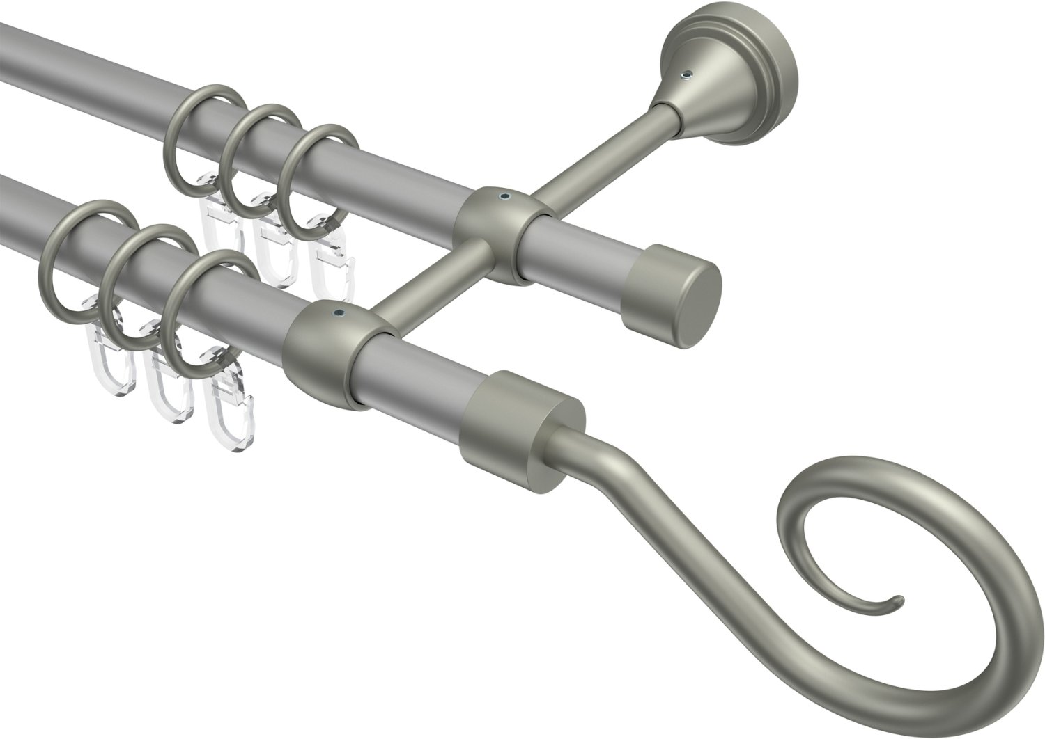 Gardinenstangen aus Metall in 16 mm Ø, 2-läufig, Modell PRIMUS - Allegra Silbergrau / Chrom matt