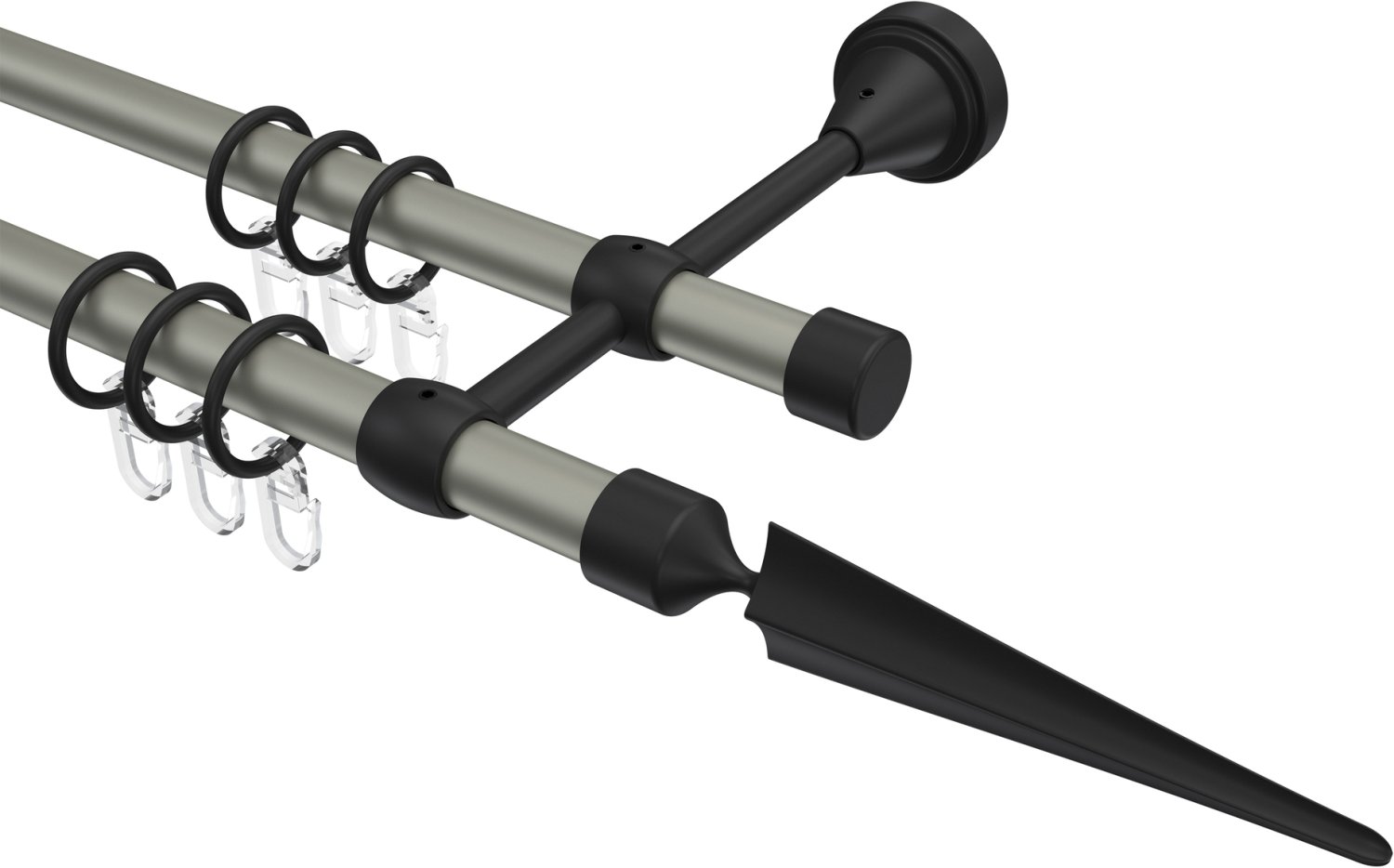 Informationen zu Gardinenstange Metall 16 mm Ø 2-läufig PRIMUS - Lorenzo Chrom matt / Schwarz:
