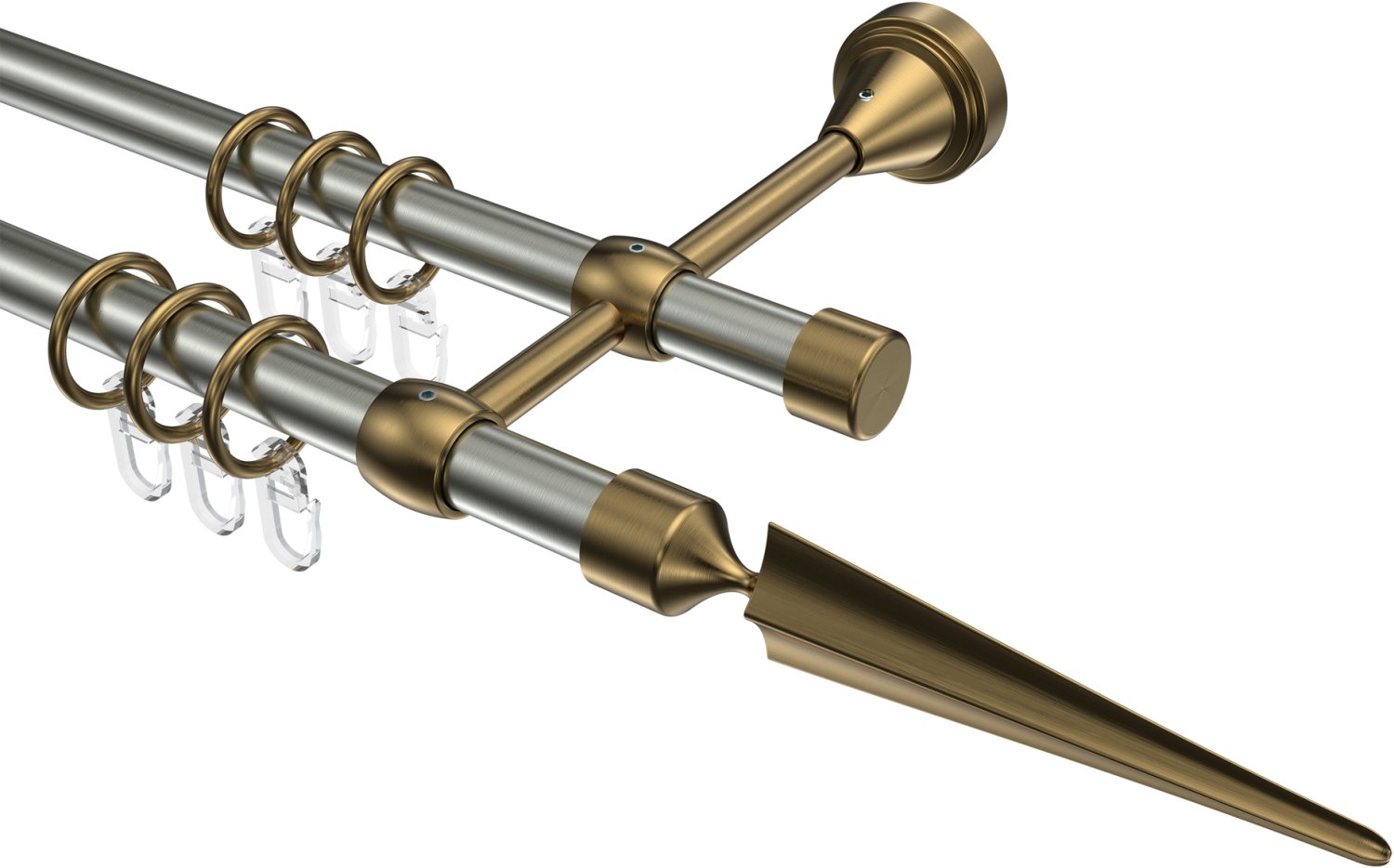 Gardinenstangen aus Metall in 16 mm Ø, 2-läufig, Modell PRIMUS - Lorenzo Edelstahl-Optik / Messing Antik
