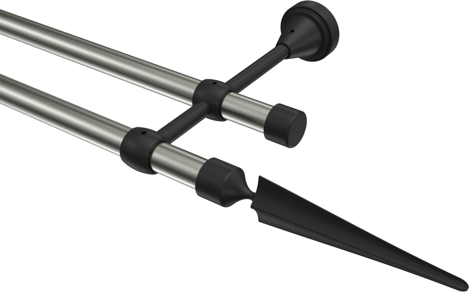 Gardinenstangen aus Metall in 16 mm Ø, 2-läufig, Modell PRIMUS - Lorenzo Edelstahl-Optik / Schwarz (ohne Ringe)