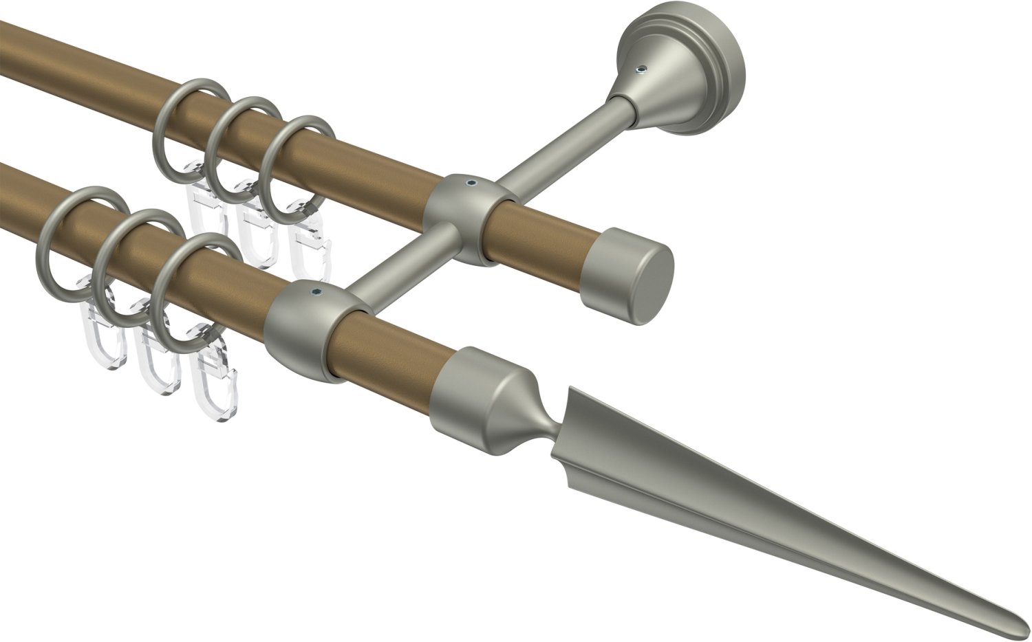 Gardinenstangen aus Metall in 16 mm Ø, 2-läufig, Modell PRIMUS - Lorenzo Gold matt / Chrom matt