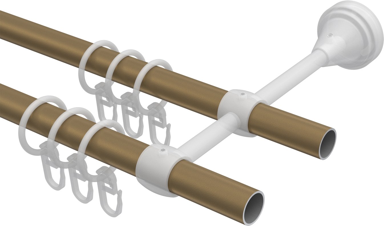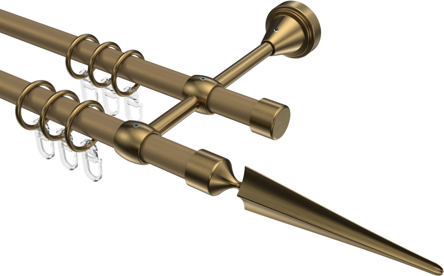 Gardinenstangen aus Metall in 16 mm Ø, 2-läufig, Modell PRIMUS - Lorenzo Gold matt / Messing Antik