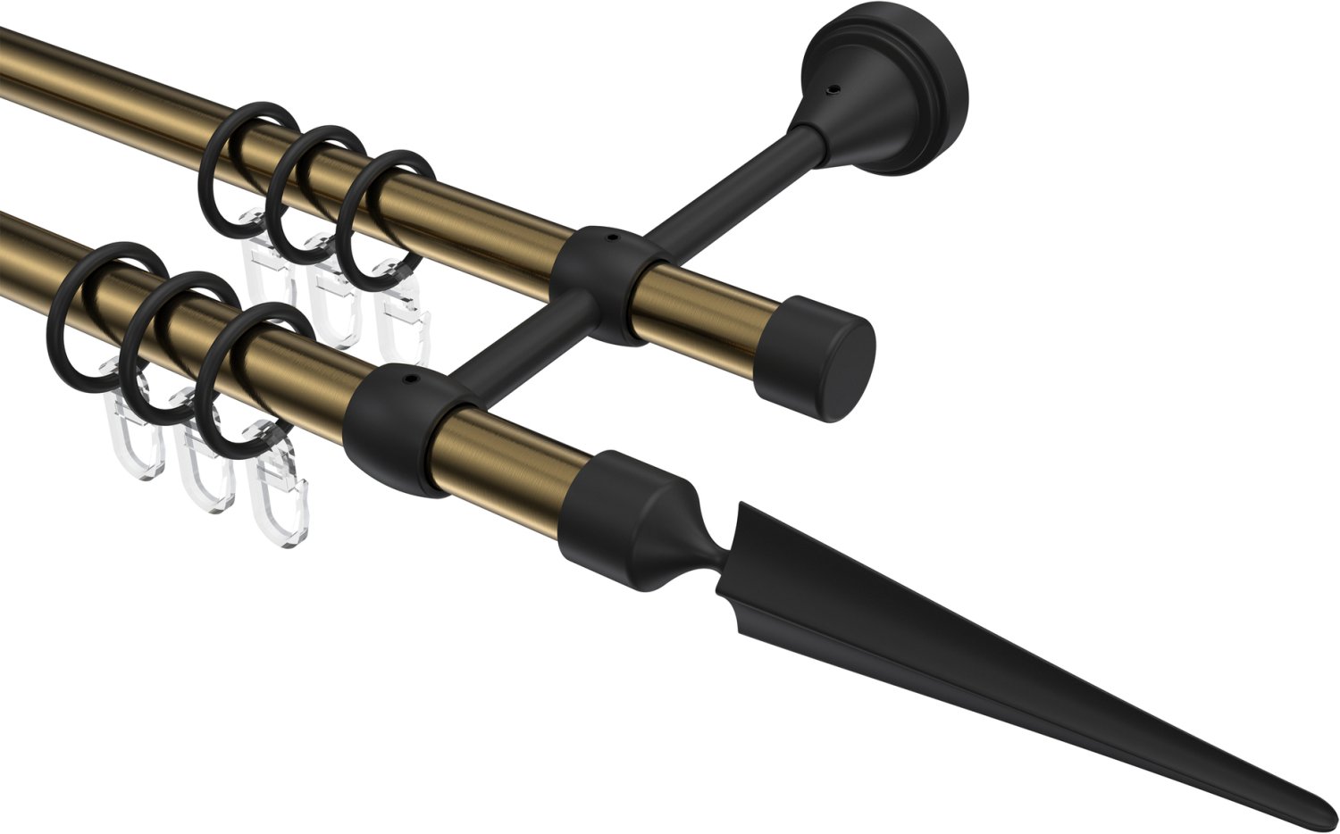 Gardinenstangen aus Metall in 16 mm Ø, 2-läufig, Modell PRIMUS - Lorenzo Messing Antik / Schwarz