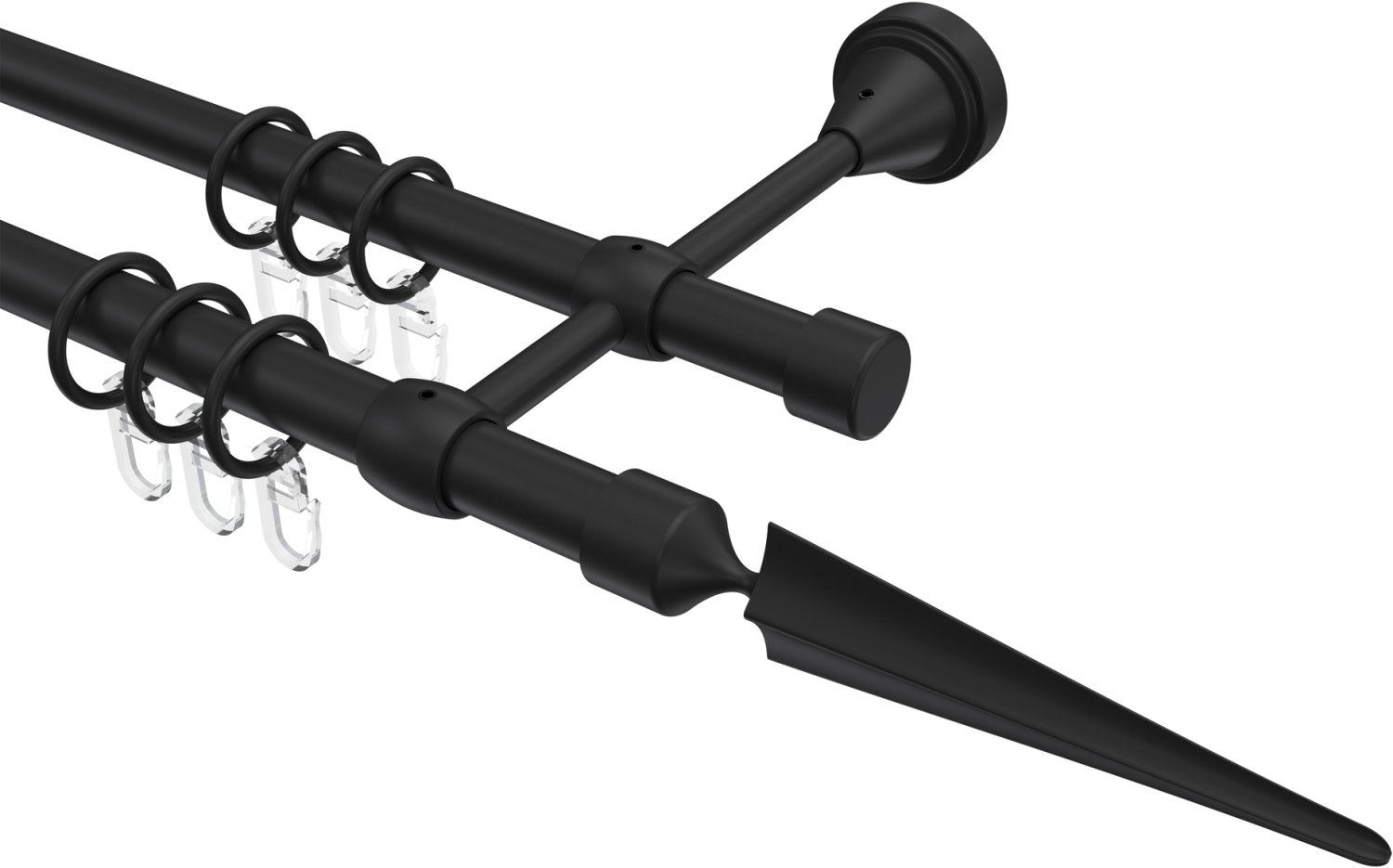 Gardinenstangen aus Metall in 16 mm Ø, 2-läufig, Modell PRIMUS - Lorenzo Schwarz