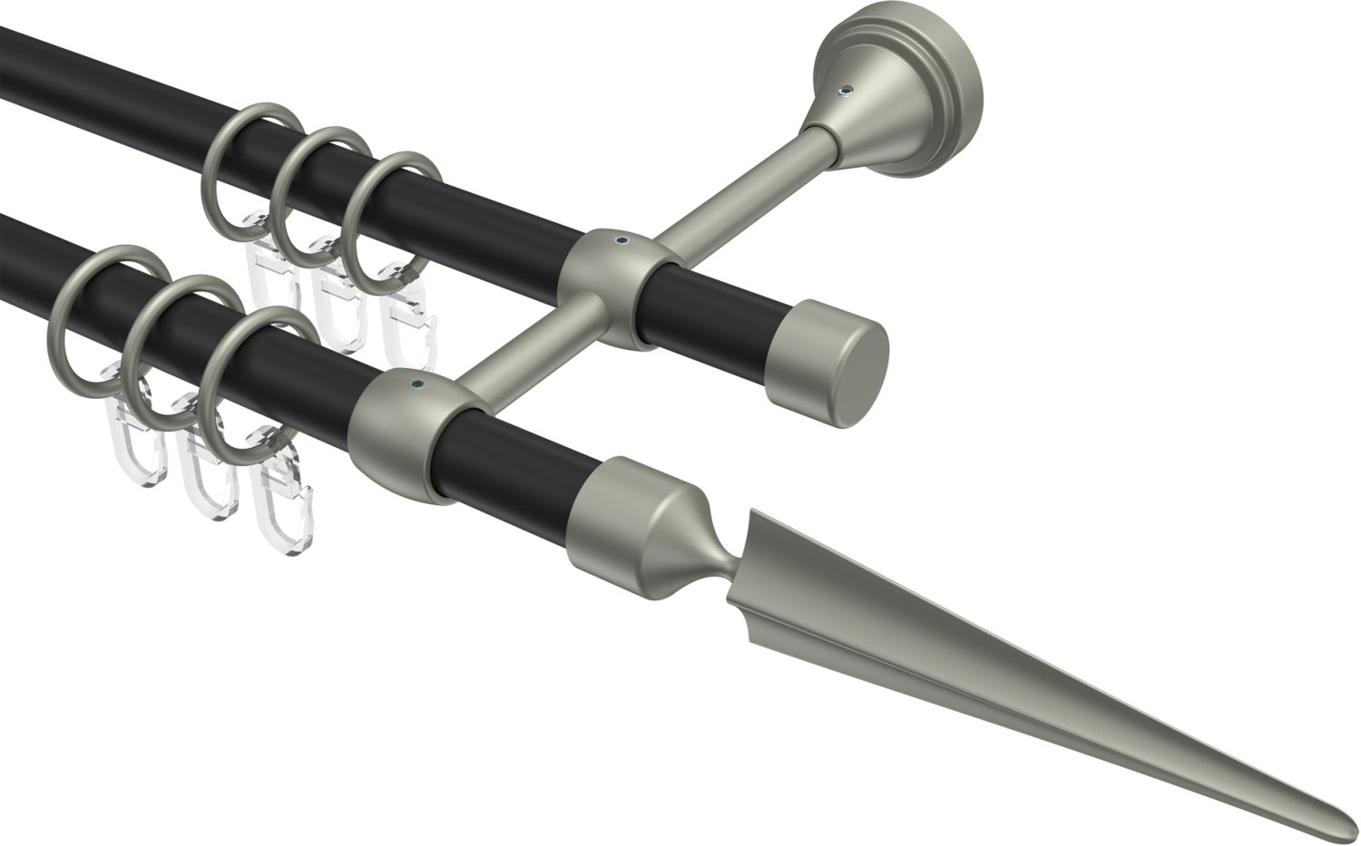 Gardinenstangen aus Metall in 16 mm Ø, 2-läufig, Modell PRIMUS - Lorenzo Schwarz / Chrom matt