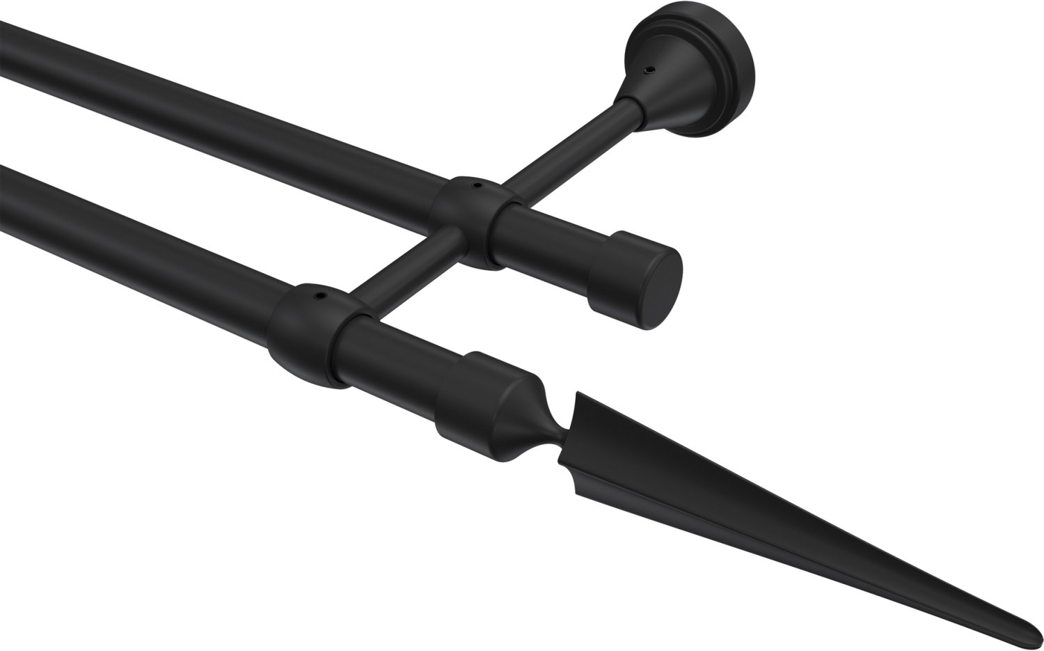 Gardinenstangen aus Metall in 16 mm Ø, 2-läufig, Modell PRIMUS - Lorenzo Schwarz (ohne Ringe)
